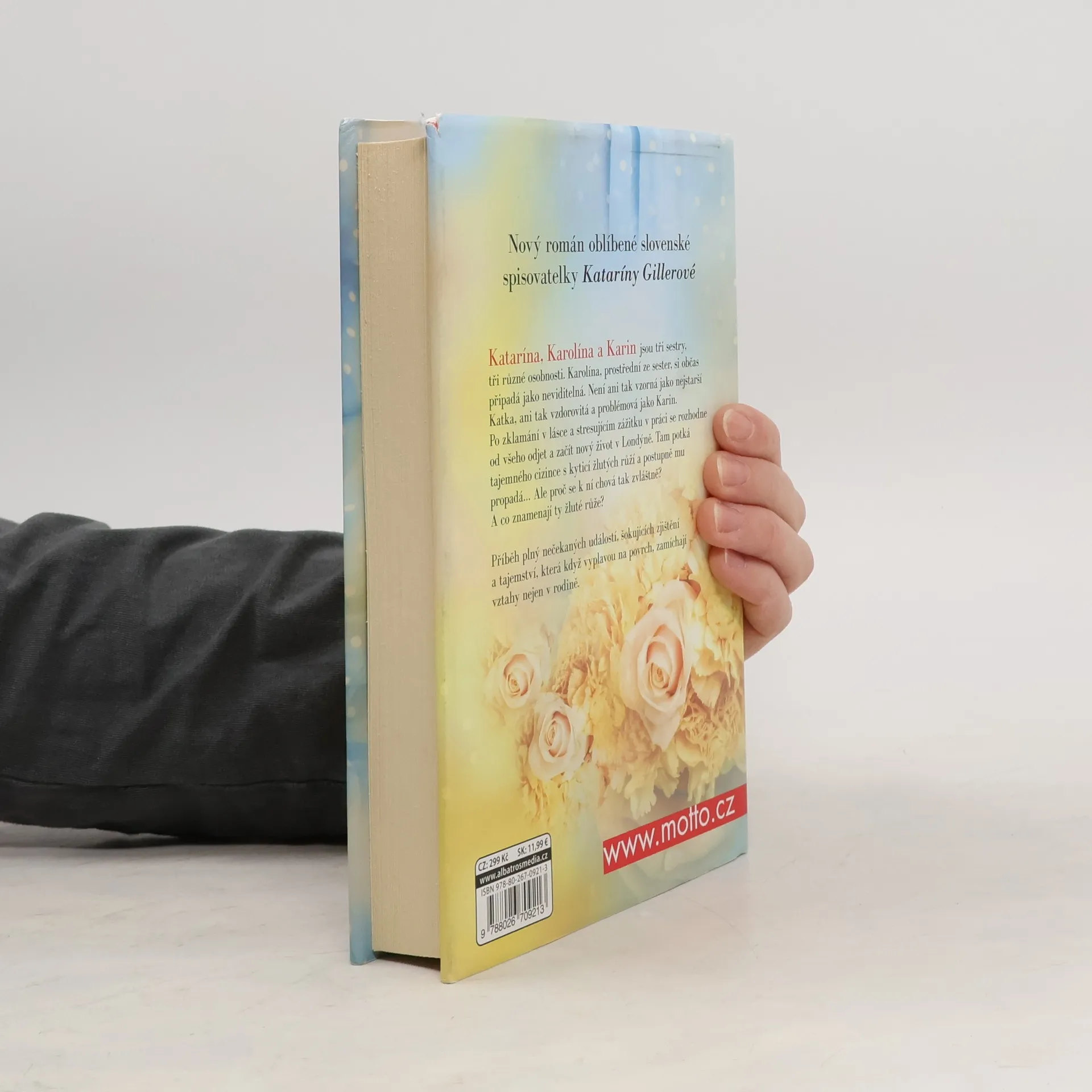 Katarína, Karolína a Karin jsou tři sestry, tři různé osobnosti. Karolína, prostřední ze sester, si občas připadá jako neviditelná. Není ani tak vzorná jako nejstarší Katka, ani tak vzdorovitá a problémová jako Karin. Po zklamání v lásce a stresujícím zážitku v práci se rozhodne od všeho odjet a začít nový život v Londýně. Tam potká tajemného cizince s kyticí žlutých růží a postupně mu propadá… Ale proč se k ní chová tak zvláštně? A co znamenají ty žluté růže? Příběh oblíbené slovenské spisovatelky Kataríny Gillerové plný nečekaných událostí, šokujících zjištění a tajemství, která když vyplavou na povrch, zamíchají vztahy nejen v rodině.