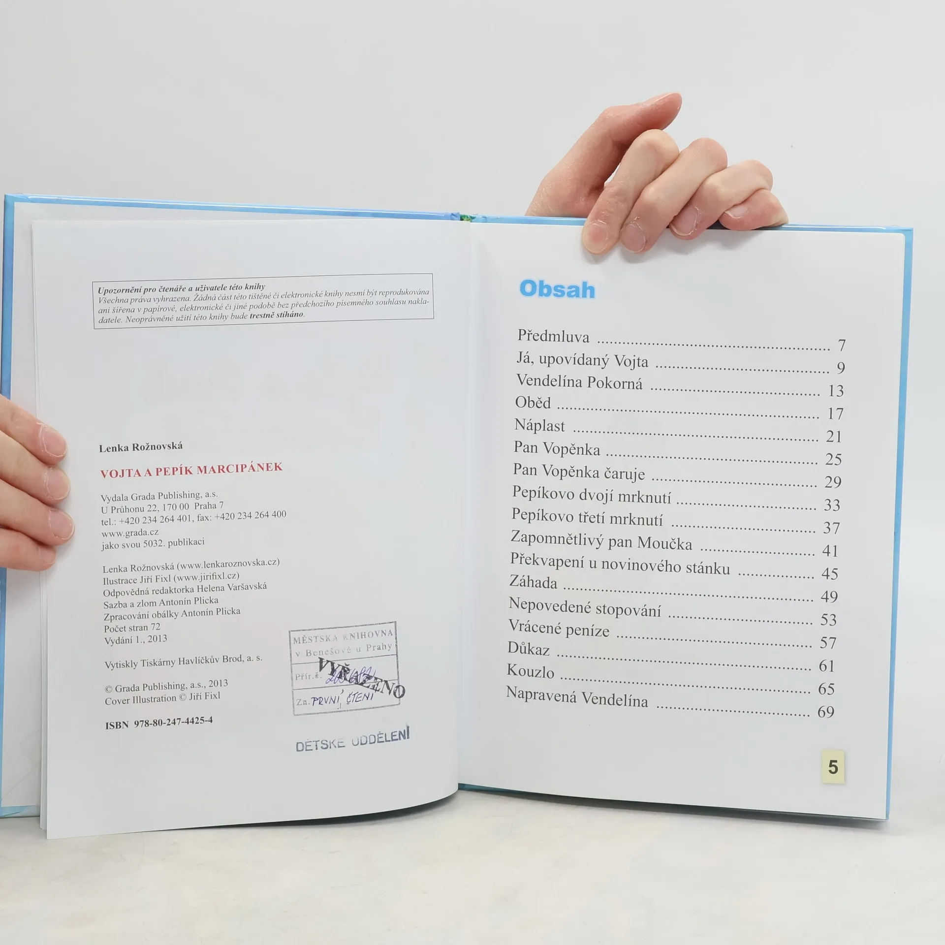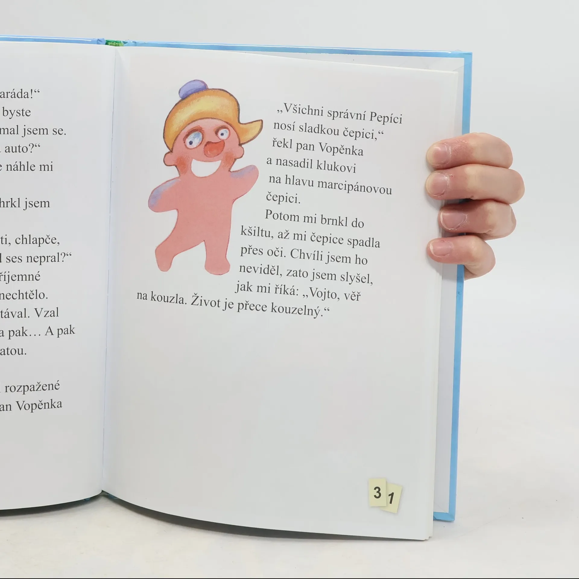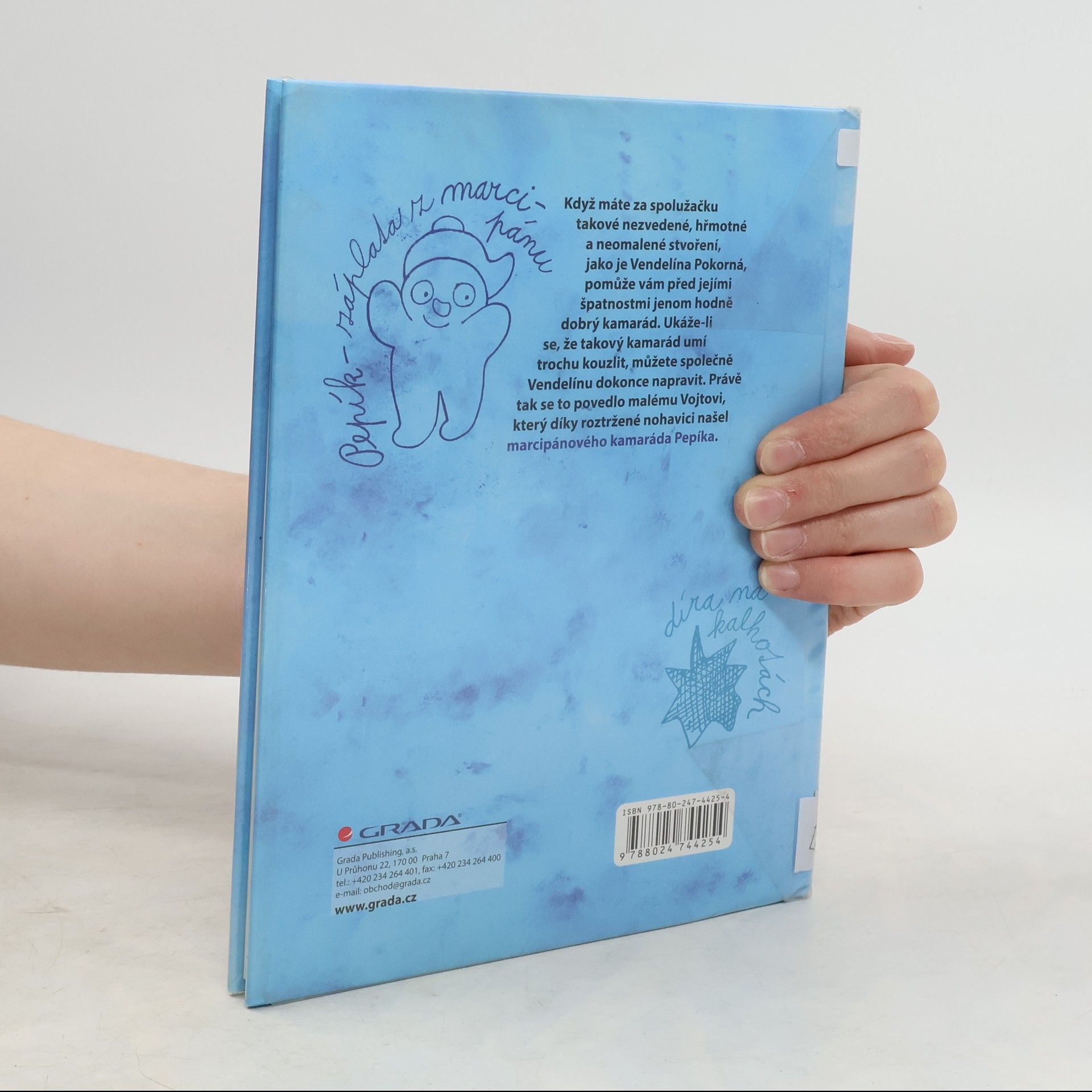 Když máte za spolužačku takové nezvedené, hřmotné a neomalené stvoření, jako je Vendelína Pokorná, pomůže vám před jejími špatnostmi jenom hodně dobrý kamarád. Ukáže-li se, že takový kamarád umí i trochu kouzlit, můžete společně Vendelínu dokonce napravit. Právě tak se to povedlo malému Vojtovi, který díky roztržené nohavici našel marcipánového kamaráda Pepíka. Dobrodružství malého školáka doprovázejí oblíbené ilustrace Jiřího Fixla.