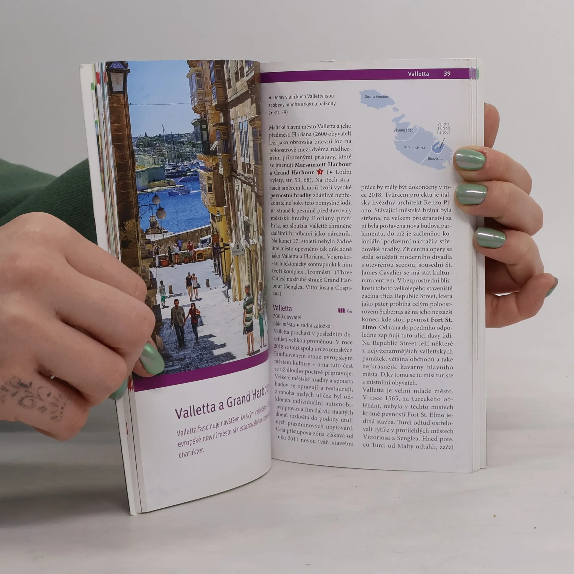 Před 12 000 lety byly maltské ostrovy součástí pevninského mostu mezi Sicílií a severní Afrikou, dnes jsou však vzdálené 100 a 300 kilometrů od nejbližších břehů. Malta, s rozlohou 316 km², vypadá jako „protiklad ráje“: je hustě osídlená, bez lesů, jezer či řek, a zemědělci se spoléhají na umělé zavlažování. Překvapivě se zde pěstují květiny, přičemž nejvyšší bod ostrova dosahuje jen 257 m n. m. Dominantou krajiny jsou velké kupole maltských kostelů. Z 370 000 převážně katolických Malťanů žije asi 9200 v hlavním městě Vallettě, které je chráněno hradbami a zachovalo si středověký ráz, což mu vyneslo status světového kulturního dědictví. Vnitrozemské město Mdina, kdysi hlavní město, obývá pouhých 400 lidí. Mezi unikátní památky patří megalitické chrámy na ostrově Gozo. Život na Maltě je ovlivněn arabskými a britskými tradicemi. Od roku 1814 do nezávislosti v roce 1964 byla Malta britskou kolonií, předtím ji spravovali maltézští rytíři. Historie zahrnuje muslimské, byzantské, normanské a římské období. Malťané jsou zpravidla přátelští, ačkoliv jejich chování může být zdrženlivější. Kromě arabsky znějící maltštiny ovládají angličtinu. Britská nadvláda zanechala také silniční provoz vlevo, což může být pro některé návštěvníky výzvou, ale mořský vítr udržuje teploty příjemné i v létě.