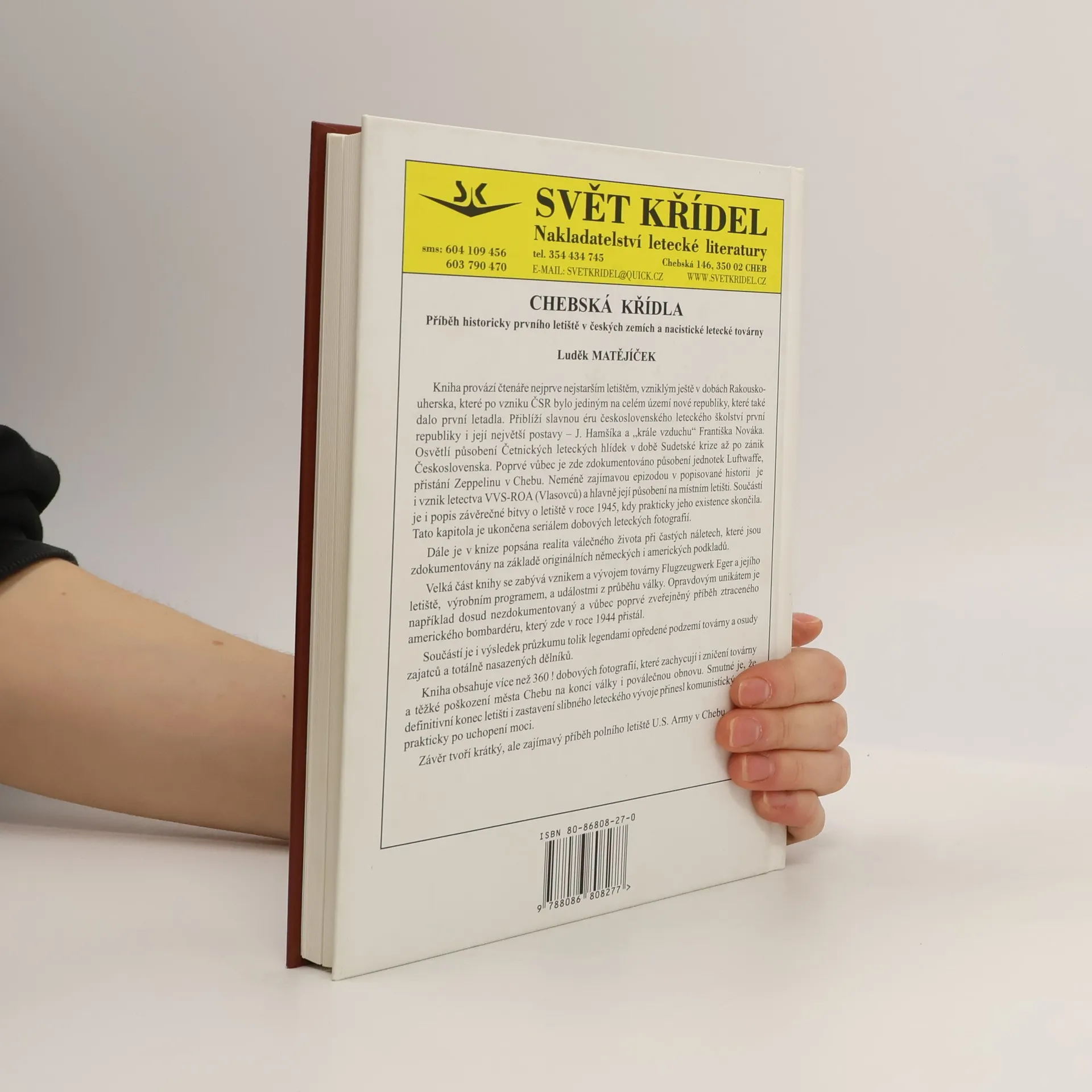 Kniha provází čtenáře nejstarším letištěm, které vzniklo za Rakouskouherska a po vzniku ČSR se stalo jediným letištěm v nové republice. Představuje éru československého leteckého školství první republiky a její významné osobnosti, jako J. Hamšíka a Františka Nováka. Osvětluje činnost Četnických leteckých hlídek během Sudetské krize až po zánik Československa a dokumentuje působení Luftwaffe a přistání Zeppelinu v Chebu. Zmiňuje také vznik letectva VVS-ROA (Vlasovců) a jeho aktivity na letišti, včetně závěrečné bitvy o letiště v roce 1945. Kapitolu uzavírá sérií dobových leteckých fotografií. Další část se zaměřuje na válečný život a časté nálety, dokumentované na základě originálních německých a amerických podkladů. Velká část knihy se věnuje továrně Flugzeugwerk Eger, jejímu letišti a událostem během války, včetně příběhu ztraceného amerického bombardéru z roku 1944. Obsahuje také průzkum podzemí továrny a osudy zajatců a nasazených dělníků. Kniha zahrnuje více než 360 dobových fotografií, zachycujících zničení továrny a města Chebu na konci války a poválečnou obnovu. Smutným závěrem je, že komunistický režim přinesl konec letiště a zastavení leteckého vývoje. Závěr tvoří příběh polního letiště U.S. Army v Chebu.