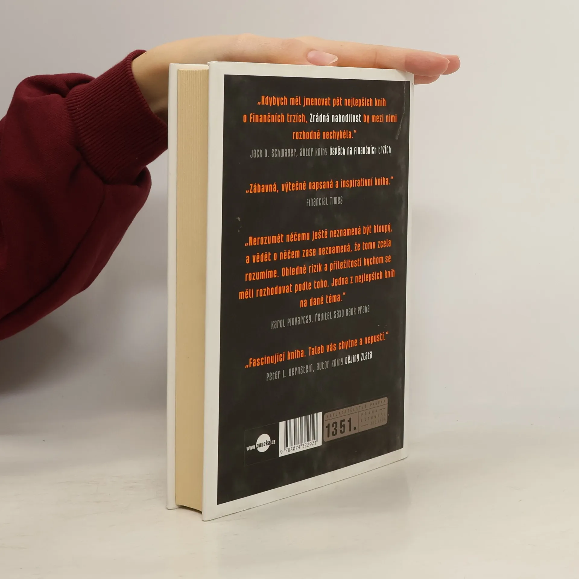 Kniha amerického ekonoma Nassima Taleba, jež podobně jako jeho nejslavnější práce Černá labuť krátce po svém vydání obletěla svět, se nepokouší o nic menšího než zásadně změnit náš pohled na sféru podnikání a obchodu a okolní svět vůbec a přimět nás, abychom si uvědomili zásadní roli, jakou v nich hraje fenomén nahodilosti. Každý z nás se snaží v životě uspět, některým se však v tomto úsilí daří lépe než ostatním. Je to zásluhou výjimečné dávky talentu, mimořádné píle, či optimální strategie? Nebo snad lze úspěch přičítat především čemusi zcela nepředvídatelnému – náhodě a štěstí? Autor nezapře svou profesní zkušenost s finančními trhy, své inspirativní postřehy a úvahy však dokáže aplikovat i na životní realitu důvěrně známou každému z nás.