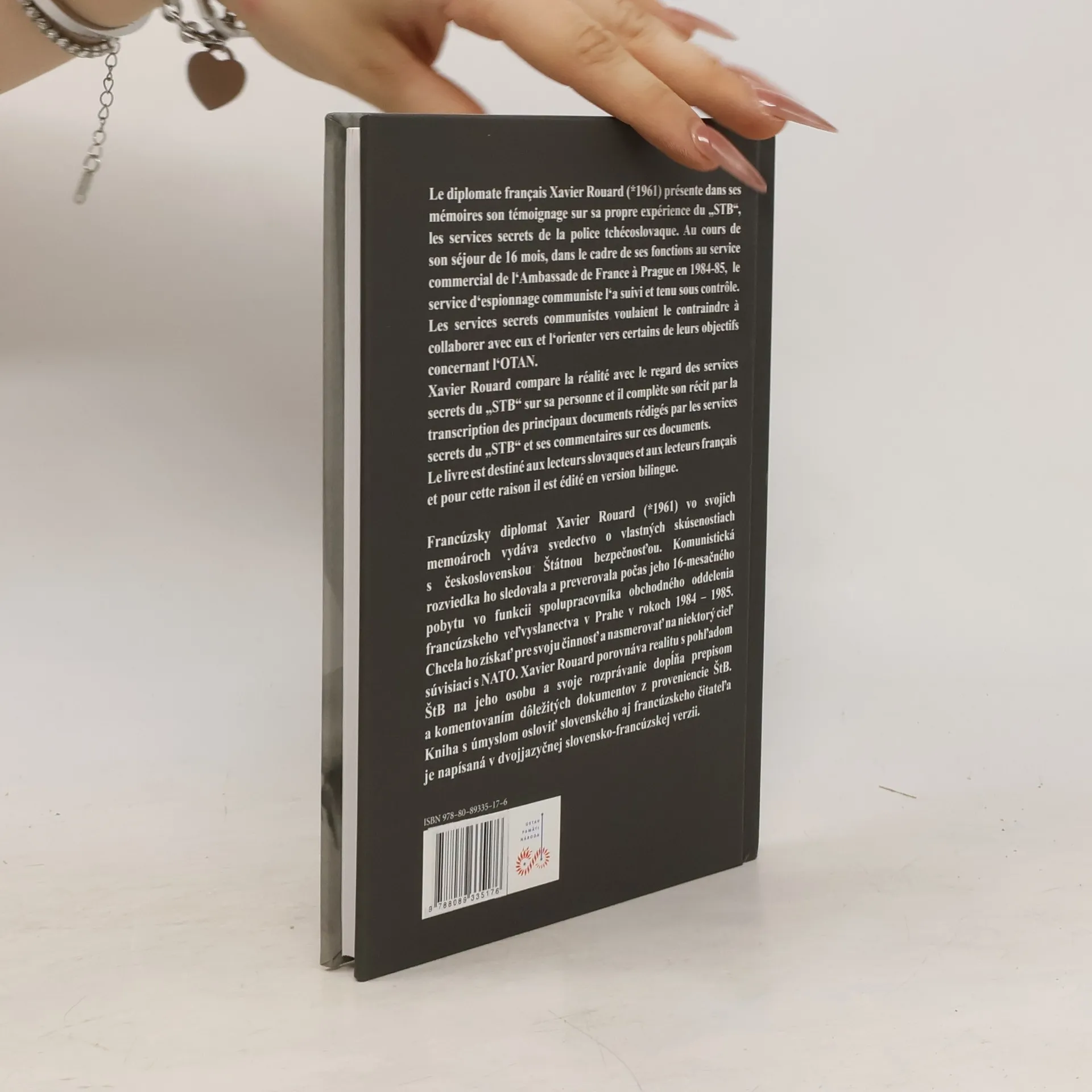 Francúzsky diplomat Xavier Rouard vo svojich memoároch vydáva svedectvo o vlastných skúsenostiach s československou Štátnou bezpečnosťou. Komunistická rozviedka ho sledovala a preveroval počas jeho 16-mesačného pobytu vo funkcii spolupracovníka obchodného oddelenia francúzskeho veľvyslanectva v Prahe v rokoch 1984-1985. Chcela ho získať pre svoju činnosť a nasmerovať na niektorý cieľ súvisiaci s NATO. Autor porovnáva realitu s pohľadom ŠtB na jeho osobu a svoje rozprávanie dopľňa prepisom a komentovaním dôležitých dokumentov z proveniencie ŠtB.