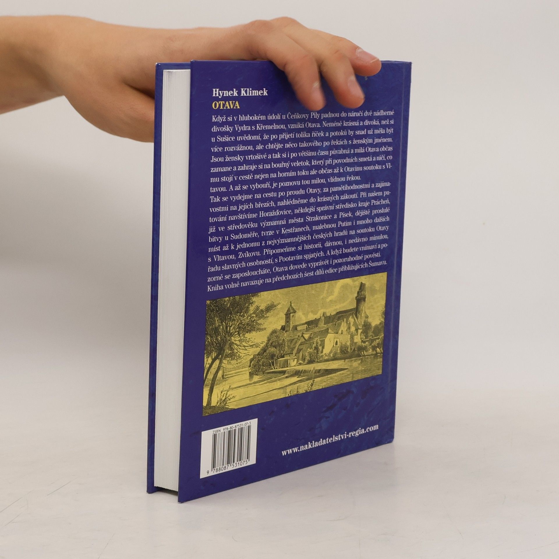 Když si v hlubokém údolí u Čeňkovy Pily padnou do náručí dvě nádherné divošky Vydra s Křemelnou, vzniká Otava. Neméně krásná a divoká, než si u Sušice uvědomí, že po přijetí tolika říček a potoků by snad už měla být více rozvážnou, ale chtějte něco takového po řekách s ženským jménem. Jsou žensky vrtošivé a tak si i po většinu času půvabná a milá Otava občas zamane a zahraje si na bouřný veletok, který při povodních smetá a ničí, co mu stojí v cestě nejen na horním toku ale občas až k soutoku s Vltavou. A až se vybouří, je poznovu tou milou, vlídnou řekou Tak se vydejme na cestu po proudu Otavy, za pamětihodnostmi a zajímavostmi na jejích březích, nahlédněme do krásných zákoutí. Při našem putování navštívíme Horažďovice, někdejší správní středisko kraje Prácheň, již ve středověku významná města Strakonice a Písek, dějiště proslulé bitvy u Sudoměře, tvrze v Kestřanech, malebnou Putim i mnoho dalších míst až k jednomu z nejvýznamnějších českých hradů na soutoku Otavy s Vltavou, Zvíkovu. Připomeňme si historii, dávnou, i nedávno minulou, řadu slavných osobností, s Pootavím spjatých. A když budete vnímaví a pozorně se zaposloucháte, Otava dovede vyprávět i pozoruhodné pověsti. Kniha volně navazuje na předchozích šest dílů edice přibližujících Šumavu.
