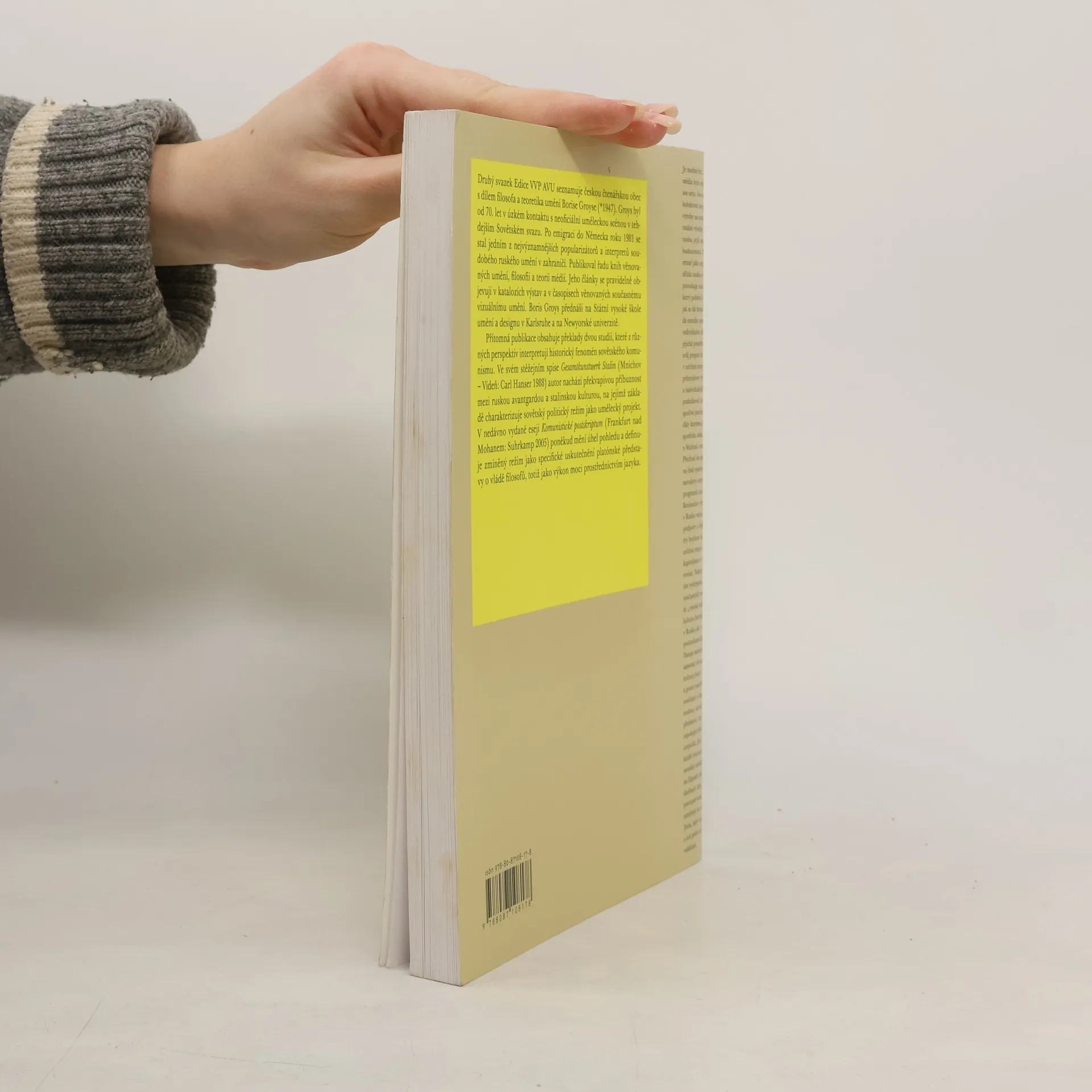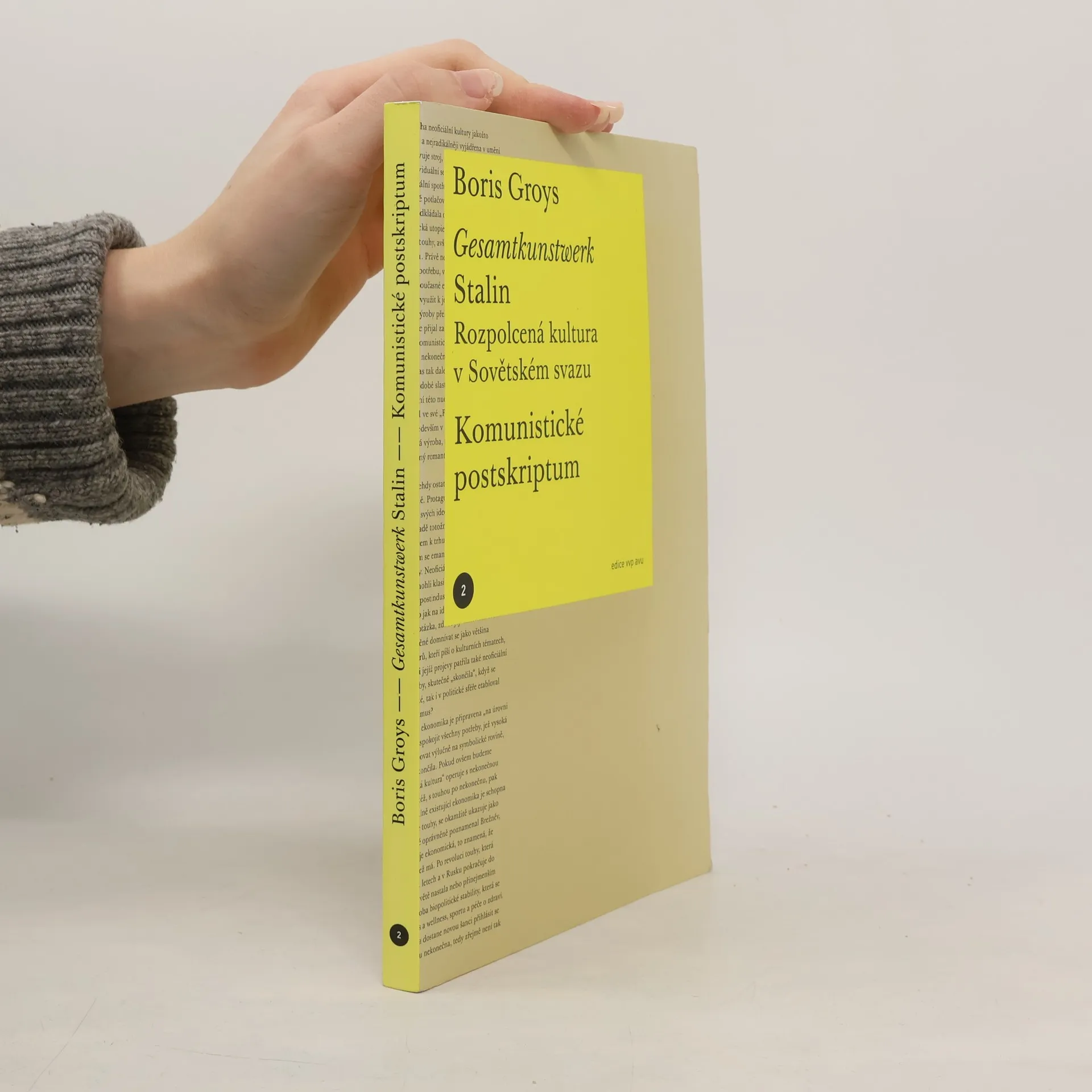 Druhý svazek Edice VVP AVU seznamuje českého čtenáře v knižní podobě poprvé s myšlením významného filosofa a teoretika umění ruského původu Borise Groyse (*1947). Publikace zahrnuje překlady dvou studií (Gesamtkunstwerk Stalin, 1988; Komunistické postskriptum, 2005), které z různých perspektiv filosoficky interpretují historický fenomén sovětského komunismu.