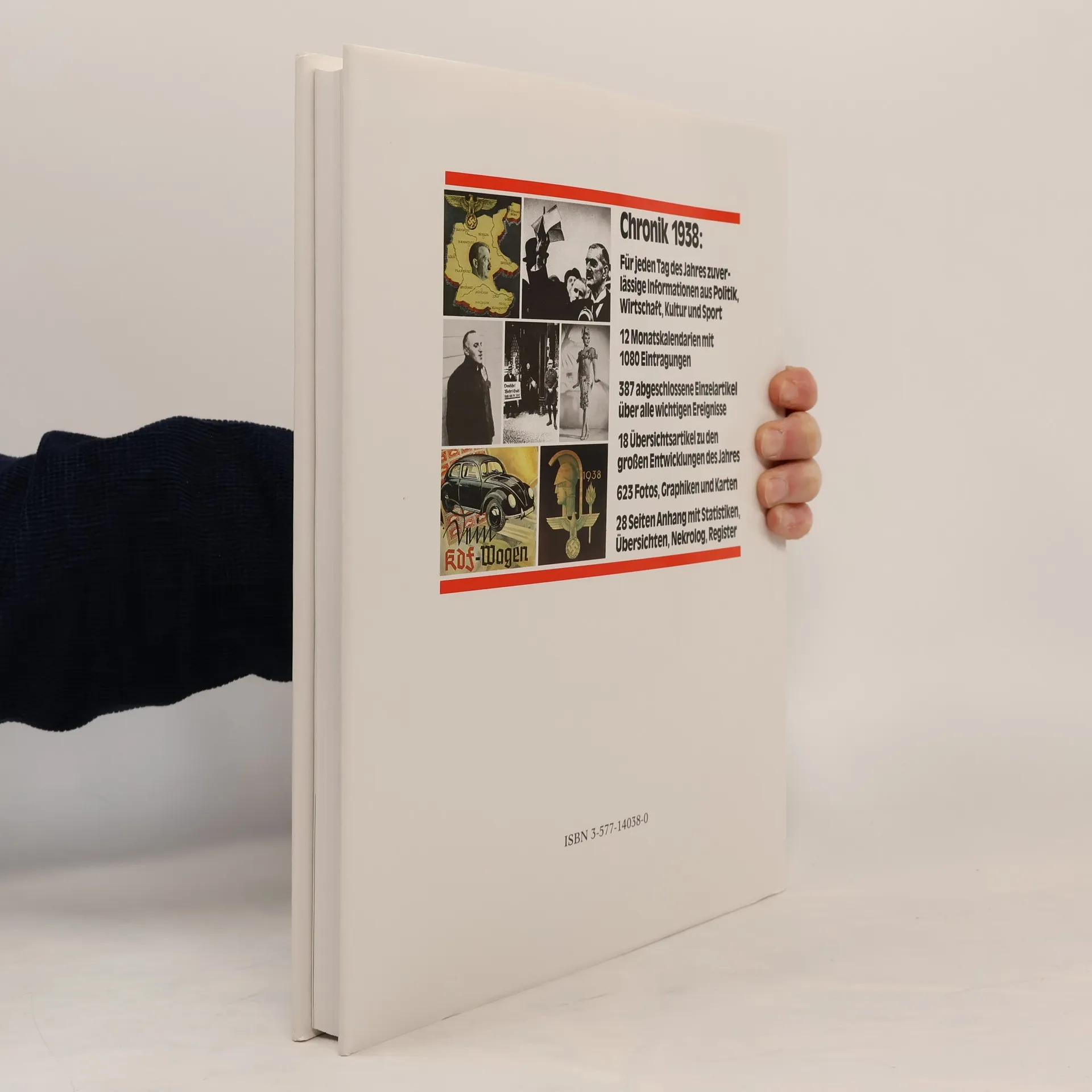 Der vorliegende Band führt sie zuverlässig durch das Jahr 1938 und gibt Ihnen einen vollständigen Überblick über die weltweit wichtigsten Ereignisse in Politik und Wirtschaft, Kultur und Sport, Alltag und Gesellschaft. Die Fülle von Artikeln, Kalendereinträgen. Fotos, Graphiken und Übersichten nach einheitl. Kriterien macht damit die Daten dieses Bandes unvergleichbar.