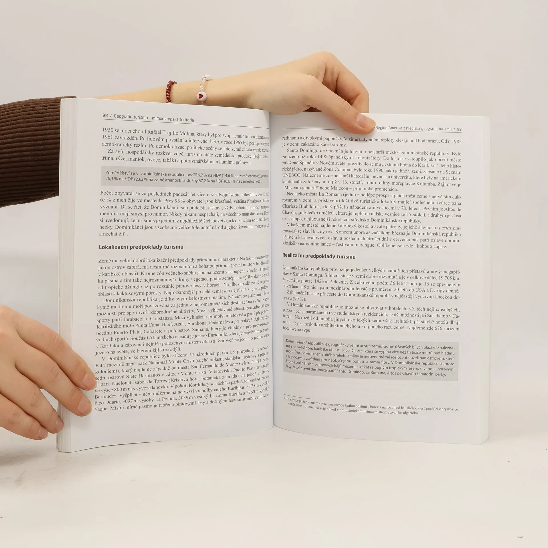 Na trhu ojedinělá publikace seznamuje studenty vysokých škol a vyšších odborných škol a pracovníky v oblasti turismu s problematikou geografie turismu v mimoevropských teritoriích. Výhody knihy oproti ostatním na toto téma spočívají v tom, že autorka svět dělí podle metodiky UNWTO (vhodná návaznost na ostatní publikace věnované cestovnímu ruchu) a nabízí komplexní přehled regionů z hlediska geografie turismu a podrobnější charakteristiku vybraných zemí daných regionů. V knize se nejprve seznámíte s nejdynamičtěji rostoucím regionem turismu, kterým je Asie a Pacifik, dále poznáte předpoklady turismu v regionu Amerika a na konec se budete věnovat regionu Středního východu a jeho potenciálu z hlediska turismu. Region Afrika má ze všech uvedených regionů největší možnosti lokalizačních podmínek turismu, ale vzhledem ke špatné úrovni selektivních a realizačních předpokladů nelze předpokládat výraznější nárůst návštěvnosti. U každého regionu najdete kromě celkového zhodnocení předpokladů cestovního ruchu (selektivní, lokalizační, realizační) informace o všech zemích, které jsou jeho součástí. Knihu odborně recenzoval Doc. RNDr. Václav Kašpar, CSc. obsah kapitol volně k dispozici na: http://www.obalkyknih.cz/file/toc/65613/pdf