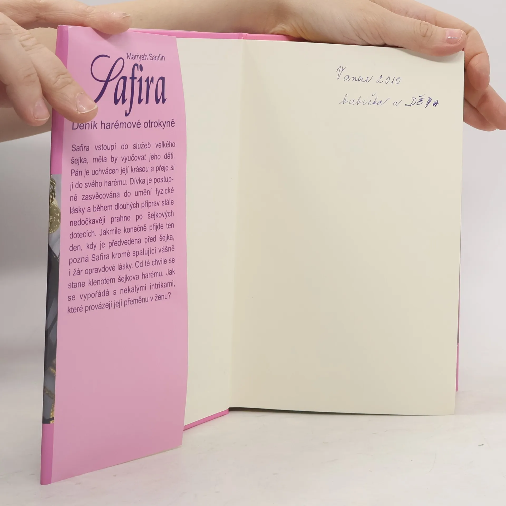 Safira vstoupí do služeb velkého šejka, aby vyučovala jeho děti. Pán je uchvácen její krásou a žádá si ji do svého harému. Dívka je zasvěcována do umění fyzické lásky a během dlouhých příprav prahne po jeho dotecích. Když konečně přijde ten den, kdy je předvedena před šejka, Safira kromě spalující vášně pozná i žár opravdové lásky a stává se klenotem šejkova harému. Jak se vypořádá s nekalými intr ... Deník harémové otrokyně