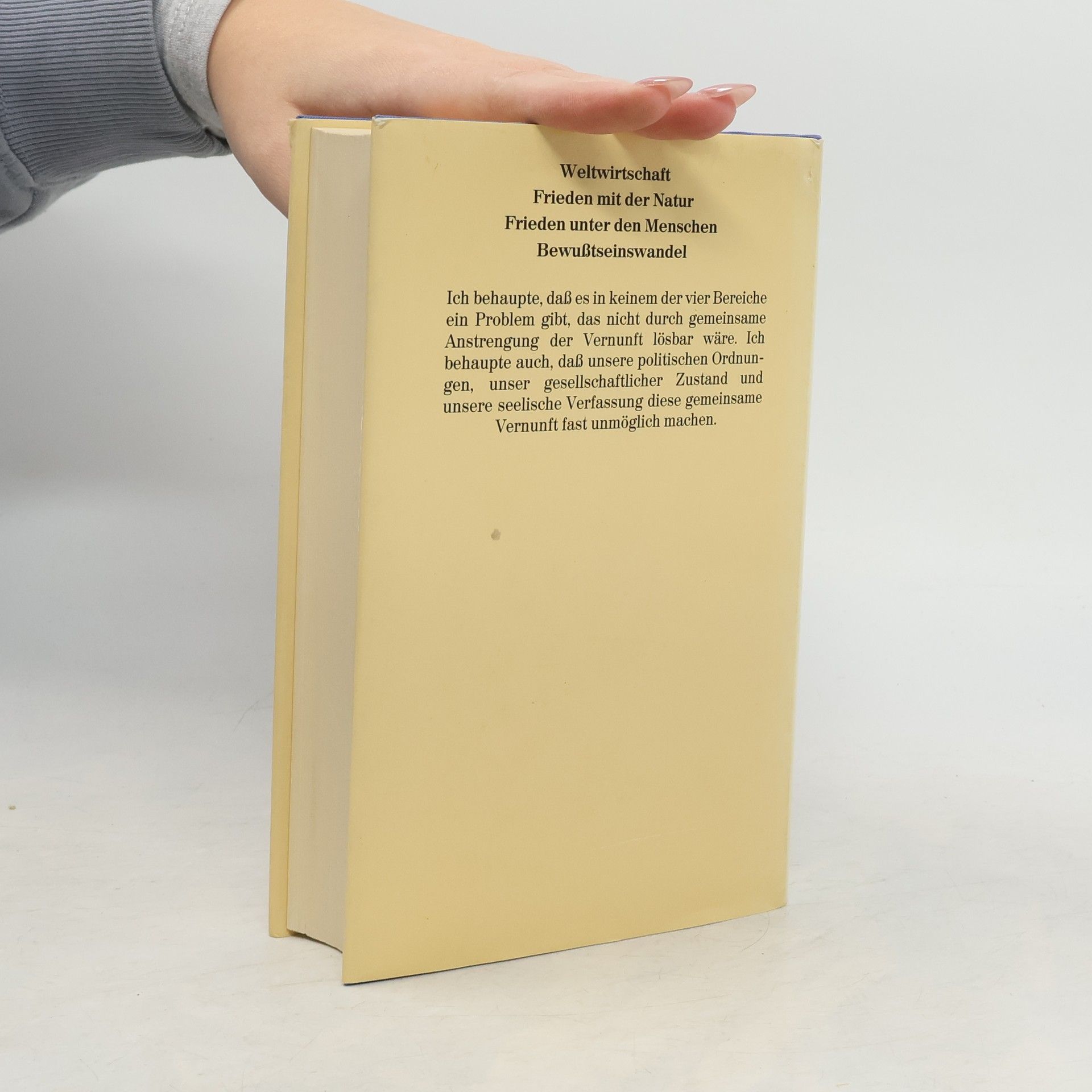 Die drei großen weltpolitischen Aufgaben der Gegenwart – die Überwindung des Ungleichgewichtes zwischen dritter Welt und Industrienationen, die Überwindung der Institution Krieg und die Rettung der Natur – bleiben unbewältigt, solange es keinen Bewußtseinswandel gibt. Weizsäcker zeigt, daß die Herkunft unserer heutigen Weltprobleme in unserer kulturellen, politischen und religiösen Geschichte zu suchen ist. Er setzt sich in diesem Buch in politischen und historischen Analysen, in persönlicher Rechenschaft und in theologischer Meditation mit allen Fragen eines notwendigen Bewußtseinswandels auseinander.