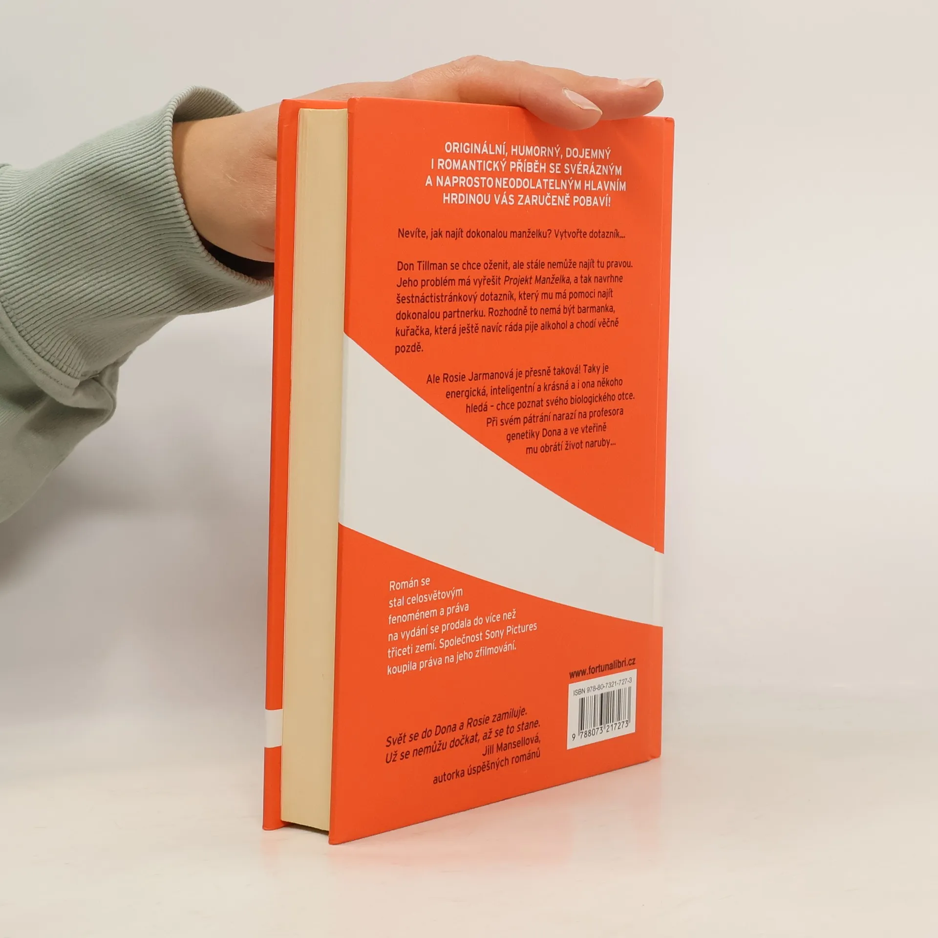 Originální, humorný, dojemný i romantický příběh se svérázným a naprosto neodolatelným hlavním hrdinou vás zaručeně pobaví! Nevíte, jak najít dokonalou manželku? Vytvořte dotazník... Don Tillman se chce oženit, ale stále nemůže najít tu pravou. Jeho problém má vyřešit Projekt Manželka, a tak navrhne šestnáctistránkový dotazník, který mu má pomoci najít dokonalou partnerku. Rozhodně to nemá být barmanka, kuřačka, která ještě navíc ráda pije alkohol a chodí věčně pozdě. Ale Rosie Jarmanová je přesně taková! Taky je energická, inteligentní a krásná a i ona někoho hledá – chce poznat svého biologického otce. Při svém pátrání narazí na profesora genetiky Dona a ve vteřině mu obrátí život naruby... Román se stal celosvětovým fenoménem a práva na vydání se prodala do více než třiceti zemí. Společnost Sony Pictures koupila práva na jeho zfilmování.