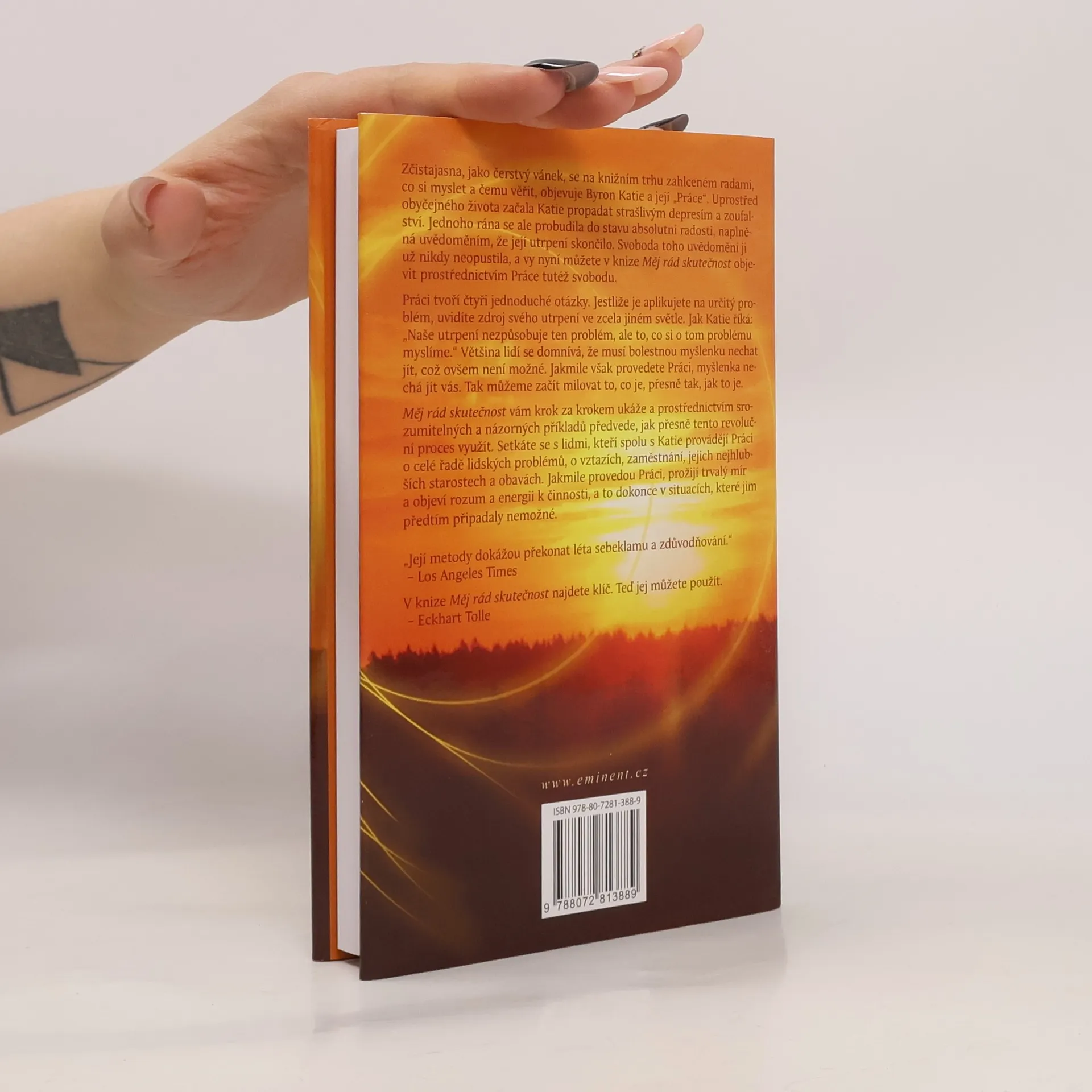 Zčistajasna, jako čerstvý vánek, se na knižním trhu zahlceném radami, co si myslet a čemu věřit, objevuje Byron Katie a její "Práce". Uprostřed obyčejného života začala Katie propadat strašlivým depresím a zoufalství. Jednoho rána se ale probudila do stavu absolutní radosti, naplněná uvědoměním, že její utrpení skončilo. Svoboda toho uvědomění ji už nikdy neopustila, a vy nyní můžete v knize Měj rád skutečnost objevit prostřednictvím Práce tutéž svobodu.
