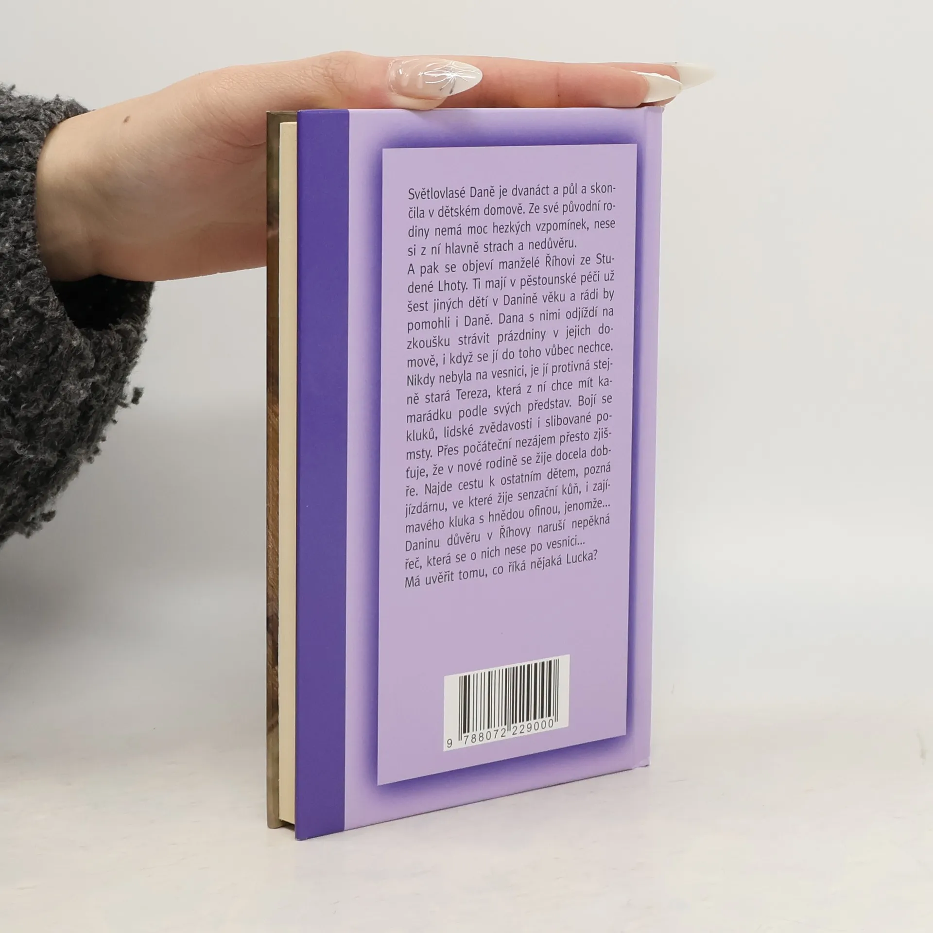 Světlovlasé Daně je dvanáct a půl a skončila v dětském domově. Ze své původní rodiny nemá moc hezkých vzpomínek, nese si z ní hlavně strach a nedůvěru. A pak se objeví manželé Říhovi ze Studené Lhoty. Ti mají v pěstounské péči už šest jiných dětí v Danině věku a rádi by pomohli i Daně. Dana s nimi odjíždí na zkoušku strávit prázdniny v jejich domově, i když se jí do toho vůbec nechce. Nikdy nebyla na vesnici, je jí protivná stejně stará Tereza, která z ní chce mít kamarádku podle svých představ. Bojí se kluků, lidské zvědavosti i slibované pomsty. Přes počáteční nezájem přesto zjišťuje, že v nové rodině se žije docela dobře. Najde cestu k ostatním dětem, pozná jízdárnu, ve které žije senzační kůň, i zajímavého kluka s hnědou ofinou, jenomže... Daninu důvěru v Říhovy naruší nepěkná řeč, která se o nich nese po vesnici... Má uvěřit tomu, co říká nějaká Lucka?