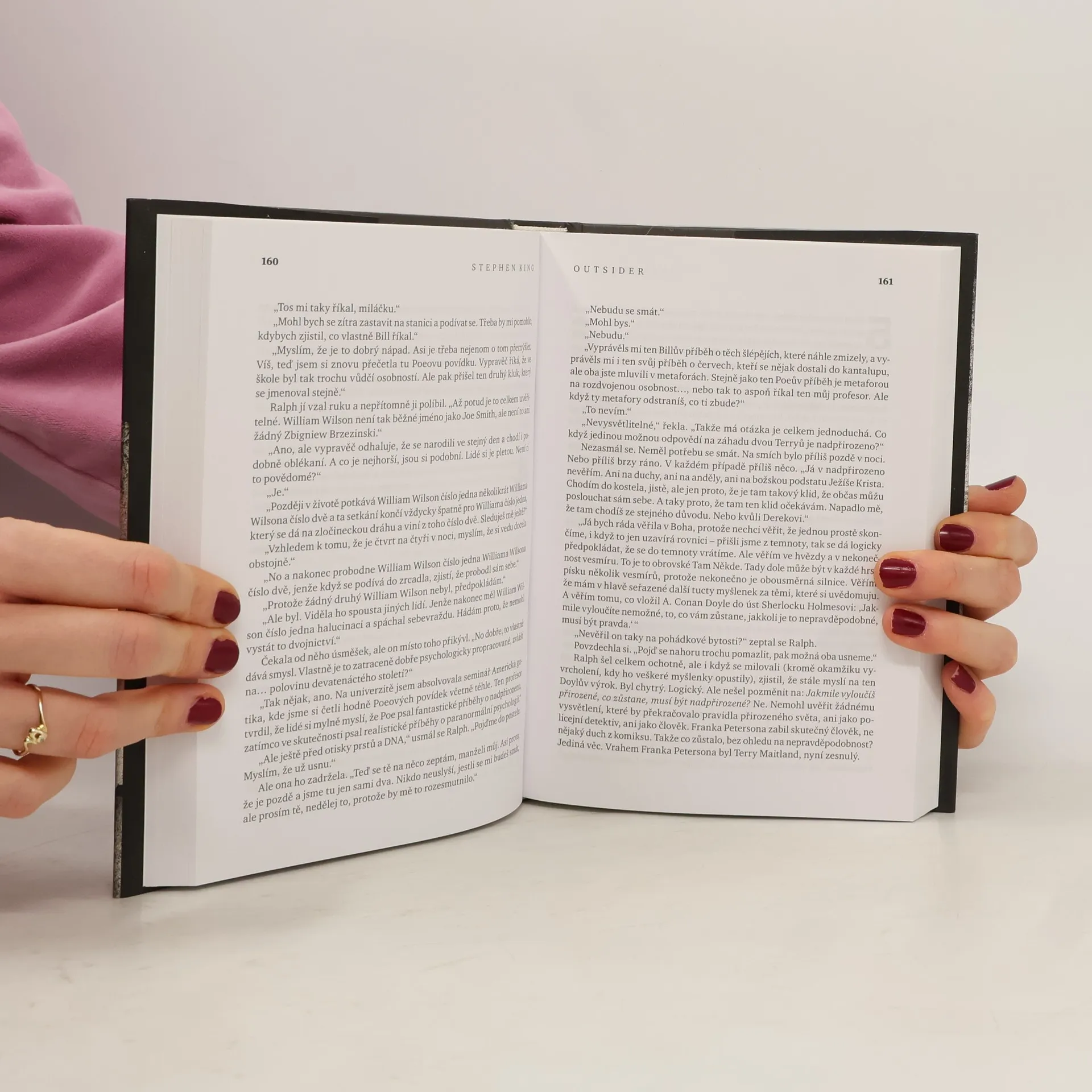 Když je v městském parku zavražděn jedenáctiletý chlapec, spolehliví očití svědci bez váhání označí za viníka oblíbeného trenéra Terryho Maitlanda. Důkaz DNA a otisky prstů potvrzují, že zločin byl spáchán tímto rodinou milovaným mužem. Detektiv Ralph Anderson, jehož syna Maitland také kdysi trénoval, otřesen brutálním způsobem zabití, dává příkaz zatknout podezřelého ve veřejném představení. Ale Maitland má alibi. A další pátrání potvrzuje, že ten den byl skutečně jinde. Anderson a okresní prokurátor sledují stopy, vyšetřování se přesouvá z Ohia do Texasu a začínají se objevovat děsivé odpovědi. Stephen King opět předvádí své mistrovství a graduje příběh do téměř nesnesitelného napětí. Terry Maitland vypadá jako fajn chlapík a člověk přece nemůže být na dvou místech najednou. Nebo může?