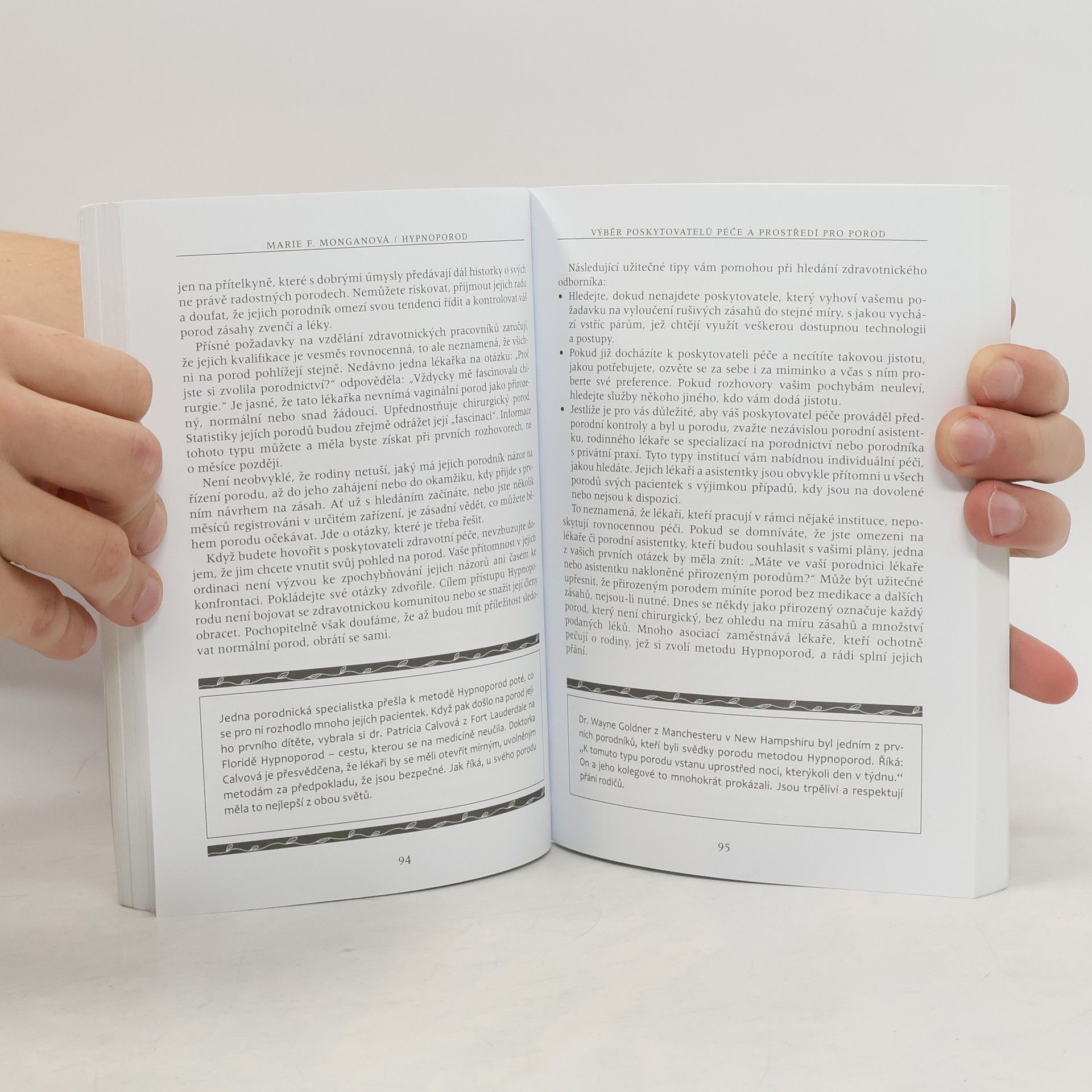 Česká republika patří k zemím, kde se většina žen porodu bojí. Často nemají jiné přání, než ho mít rychle za sebou. To první, co většinu dnešních žen v souvislosti s porodem napadá, je vědomí rizika a hrůza z bolesti. Autorka neprosazuje hypnoporody za přítomnosti odborného hypnotizéra, nýbrž vede každou jednu ženu ke schopnosti autohypnózy. Nejde tu o nic víc než o nejhlubší uvolnění, relaxaci, vnoření se do vlastního těla za současného odpojení racionálního vnímání, které umí spolehlivě zastavit jak orgasmus, tak spontánní porodní proces. Možná s autorkou nebudeme ve všem souhlasit, přesto připomíná podstatné. Těhotným a rodícím ženám skrytou moudrost a sílu jejich těl a těm, kdo o nastávající matky pečují, důležitost respektu a empatie.