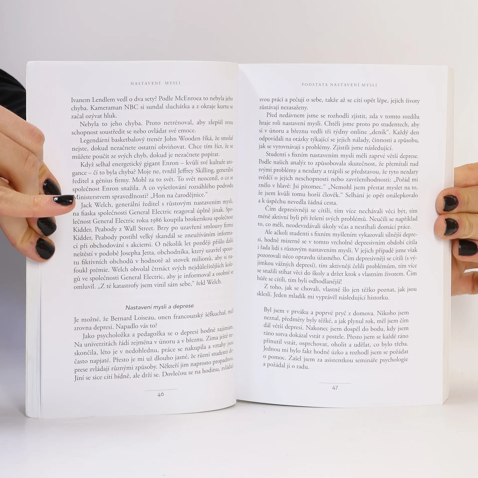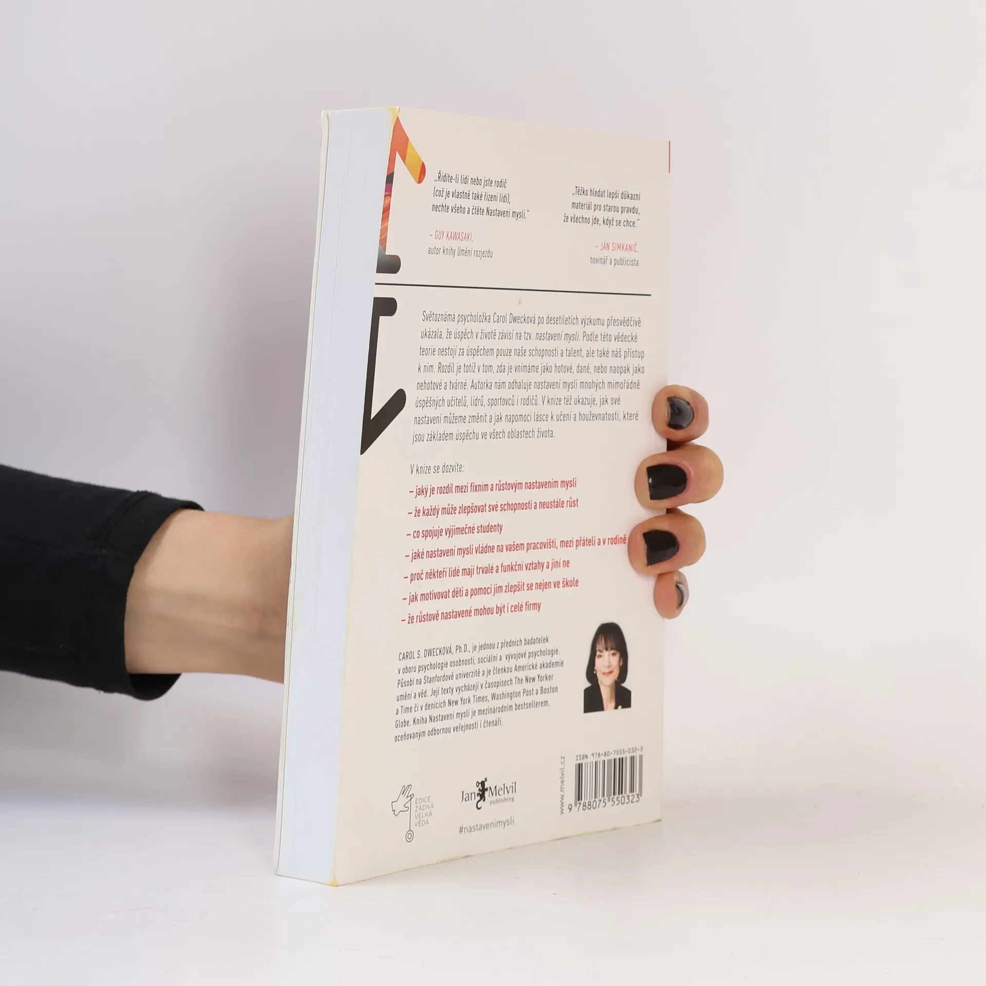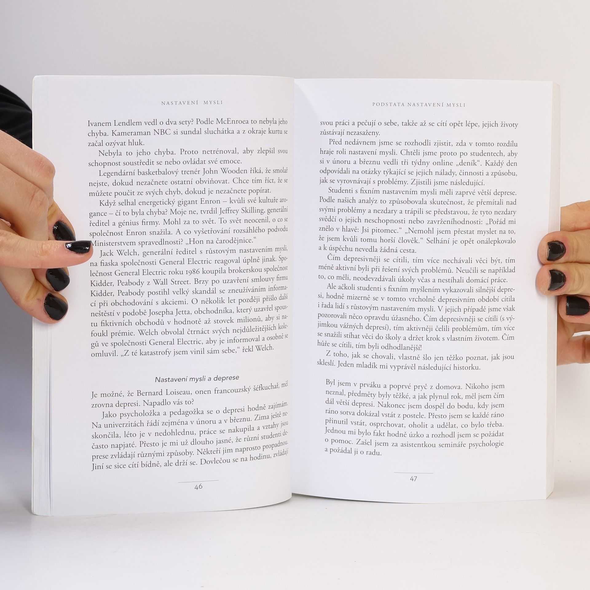 Jednoduchá myšlenka, kolem níž se tato kniha točí, a za níž stojí desítky let vědeckého výzkumu, se dá vyjádřit zhruba takto: úspěch máme ve svých hlavách. Profesorka Dwecková se svým týmem na Standfordské univerzitě zjistila, že svou přirozeností tíhneme ke dvěma relativně vyhraněným způsobům myšlení o sobě a své úspěšnosti: k myšlení růstovému a myšlení fixnímu (angl. „growth mindset“ a „fixed mindset“). To, které myšlení u nás převládá, pak významně ovlivňuje naši reálnou úspěšnost. Ke zjištěním Dweckové popsaným v knize patří nadějný závěr, že se navzdory své dispozici dokážeme během života změnit, a autorka ukazuje, jak na to: jak využít svůj plný potenciál. Chcete vědět, jak přesně se dva zmíněné typy myšlení projevují? Typickým rysem fixního myšlení je vzdávání se před překážkou, neschopnost přijímat zpětnou vazbu, špatný pocit při vnímání úspěchu ostatních, vyhýbání se výzvám a negativní postoj k úsilí jako takovému. Naopak růstové myšlení se projevuje vřelým vztahem k výzvám, vytrvalostí při čelení překážkám, pozitivním vztahem ke kritice. Růstově myslící člověk vnímá úsilí jako cestu k mistrovství a v úspěchu druhých vidí inspiraci.