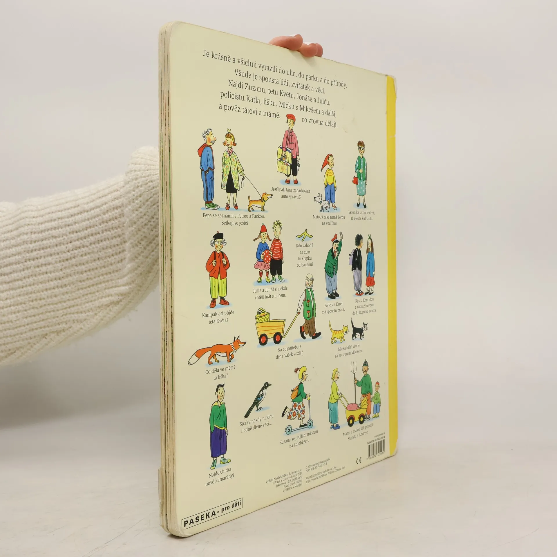 Jednoduchou řečí obrázků vypráví renomovaná autorka a ilustrátorka dětských knih Rotraut Susanne Bernerová příběhy všedního dne, obratně a vtipně splétá dohromady drobné epizody. "Malý čtenář" může v knížce hledat postavičky a zvířátka a sledovat co dělají od první do poslední stránky. Kudy chodí teta Květa, kde si kluk Ondra bude hrát s kamarády nebo co dělá ve městě liška.