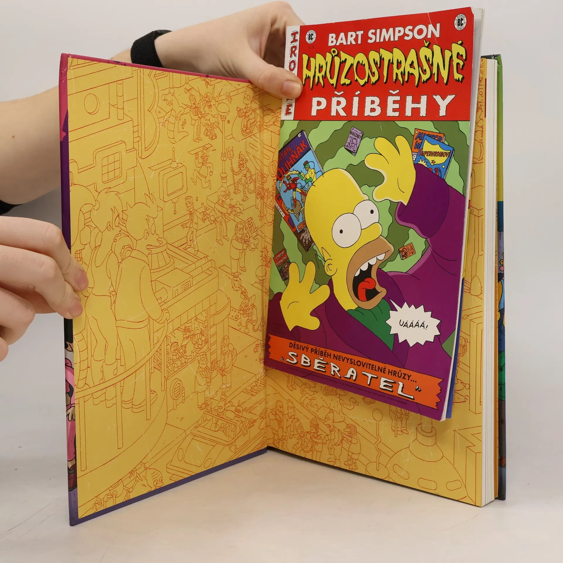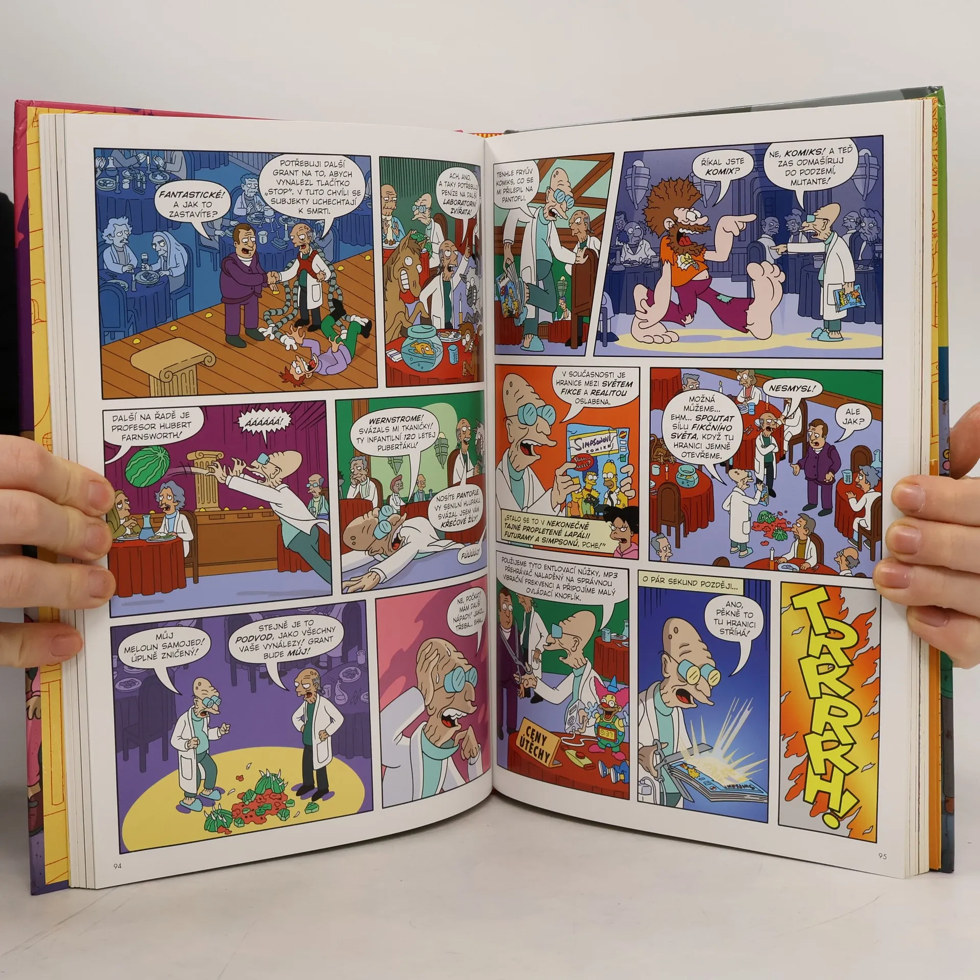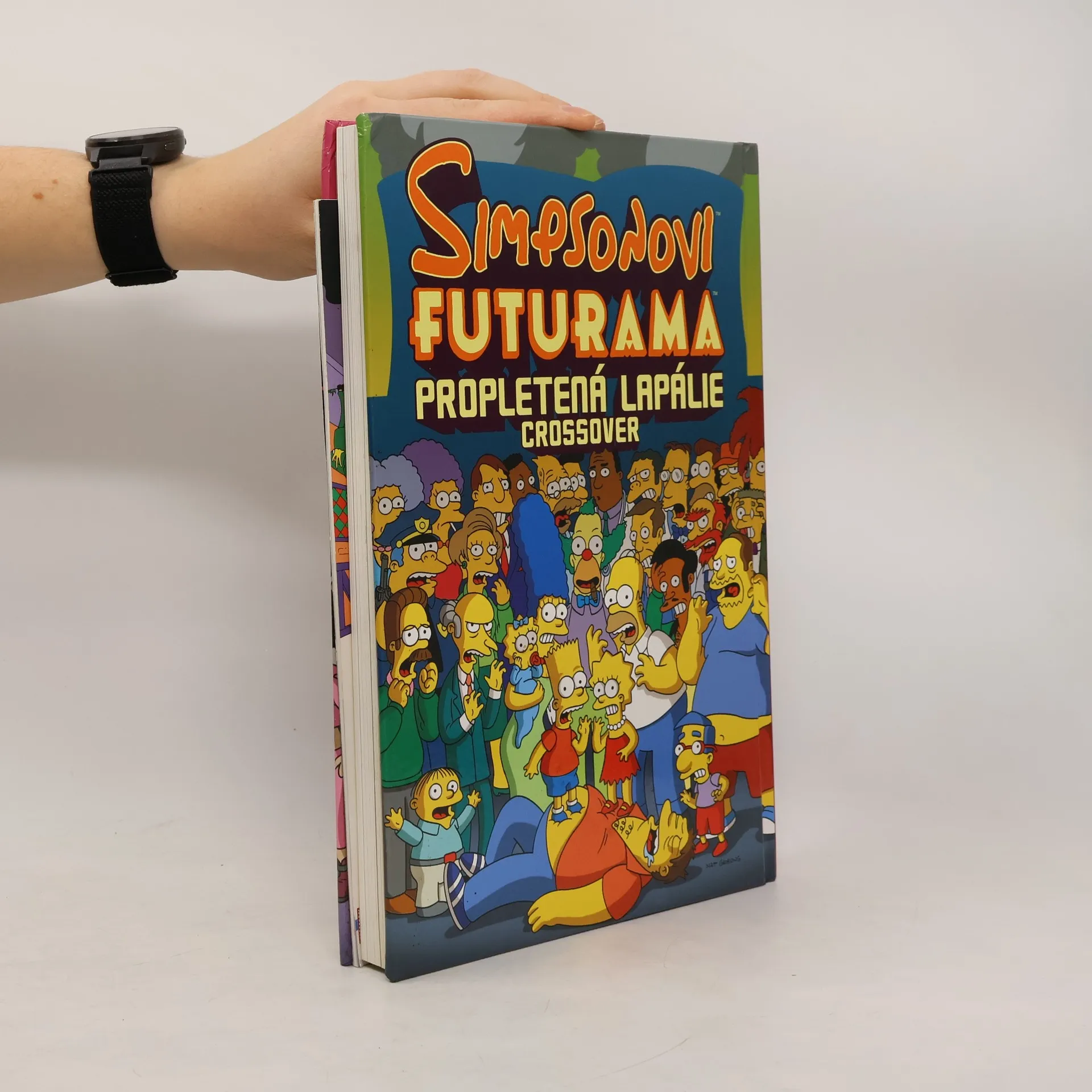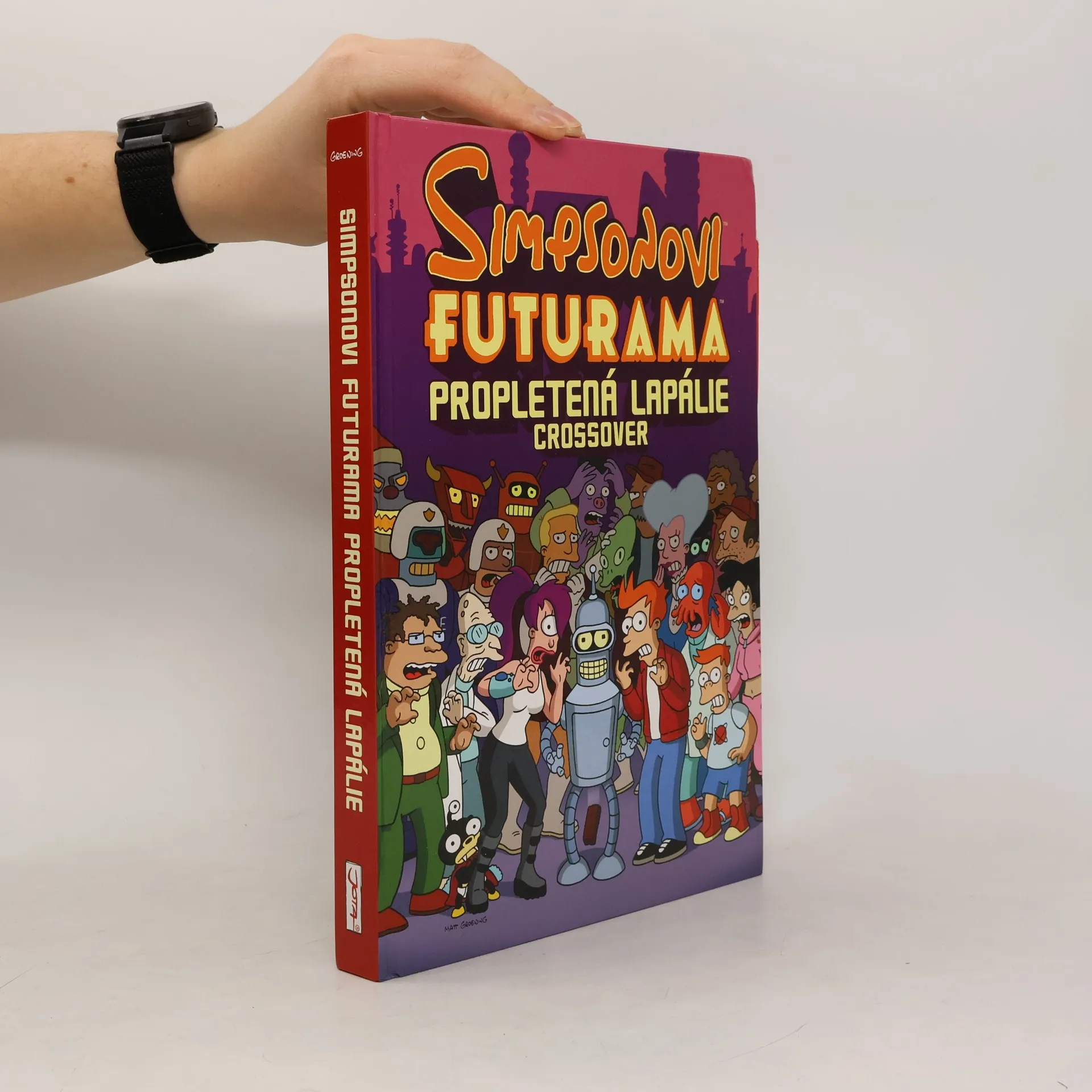 Bender vs. Homer? Tak to je nářez! Co by se stalo, kdyby se posádka Planet Expressu a obyvatelé Nového New Yorku potkali se Simpsonovými a obyvateli Springfieldu… a jak je to vůbec možné? Přicházejí Simpsonovi plní Futuramy! Futurama zaplavená Simpsonovými! Účinkují: zlí mozkové, mimozemšťané s laktózovou intolerancí, obří klubko vlny, létající auta, záměny identity, ovládnutí světa, tkanivo reality roztrhané na kusy, myslící planeta sbírající komiksy, Deweyův desetinný systém, meloun samojed, otrokářství, vesmírní piráti, mocí posedlí upíři, bitvy superhrdinů, nelichotivé spodní prádlo, šílená věda, která se vymkla kontrole a mnohem, mnohem víc! Toto je sága, na kterou jste čekali! Příběh tak velký, tak ambiciózní a tak strhující, že se musí rozložit na 208 stran velkého formátu, kde najdete pohromadě nové příběhy, mezihry, úvodní skicy, grafické návrhy postav a galerii plakátů od předních talentů komiksové grafiky, jako jsou Alex Ross, Sergio Aragonés, Geof Darrow, Kyle Baker, Peter Kuper a Bernie Wrightson a další. Hledáte konvergenci trhání reality, cestování časoprostorem a to vše v intergalaktickém měřítku? Přesně to jsou Simsonovi versus Futurama a jejich Propletená lapálie! Zábava od začátku až do konce!