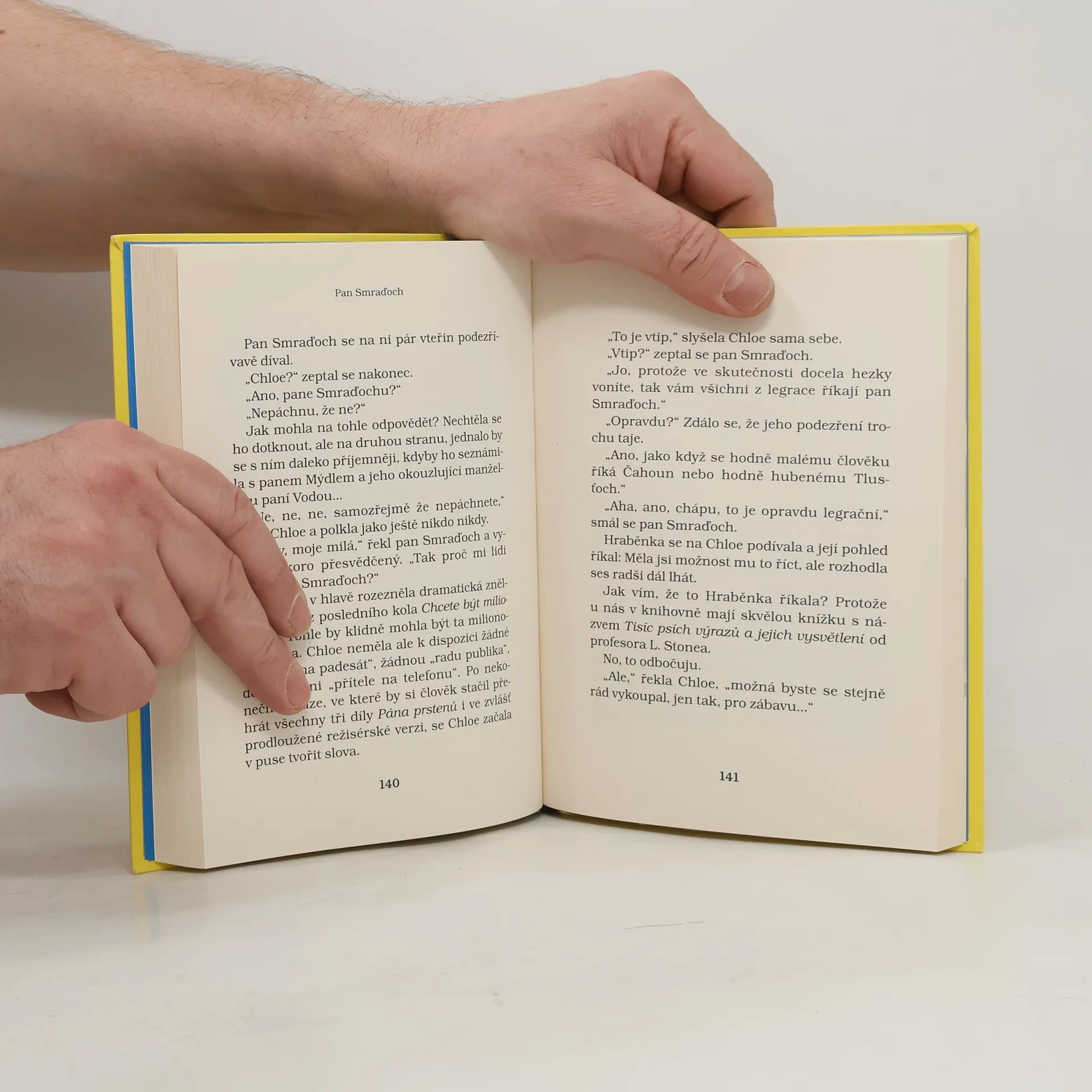 Další humorný příběh pro mladé čtenáře od autora knihy Babička drsňačka. Kouzelně neuctivý a zároveň dojemný příběh vypráví o tajemstvích, přátelství i docela obyčejném životě. Pan Smraďoch patří do kategorie hodně divných románových hrdinů. Žije na lavičce v parku a svému jménu dělá opravdu čest. Je to ten nejsmradlavější smraďoch pod sluncem. Dvanáctileté Chloe to ale rozhodně nebrání v tom, aby se s ním spřátelila. Jasně, páchne, ale na druhou stranu nikdy na ni nikdo nebyl tak milý jako on. A tak se Chloe rozhodne, že milého bezdomovce tajně ubytuje v kůlně na zahradě svých rodičů. Jenže schovejte takového smraďocha! Chloe brzy pozná, že některá tajemství můžou být velmi nebezpečná a od katastrofy je dělí jen malinký krůček.