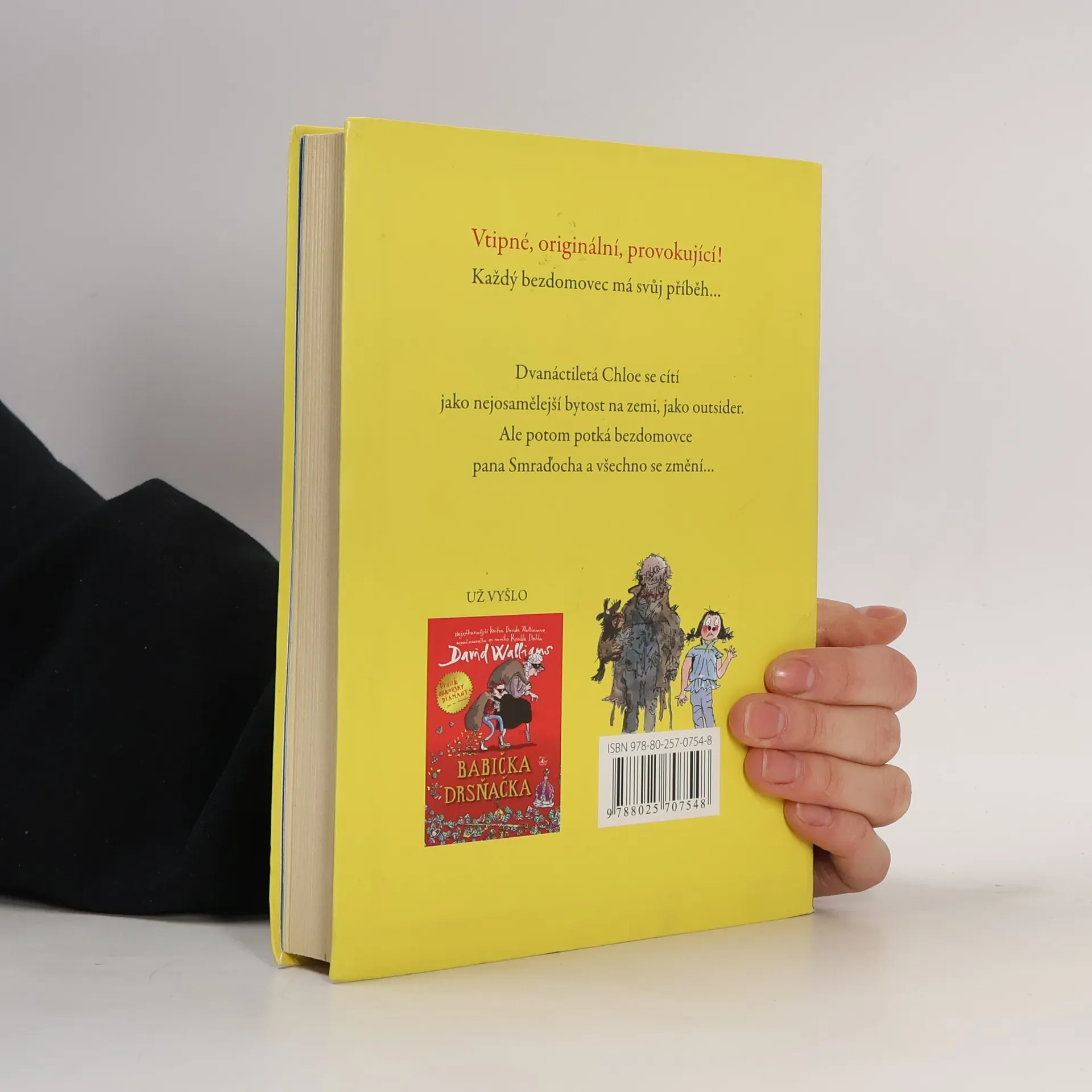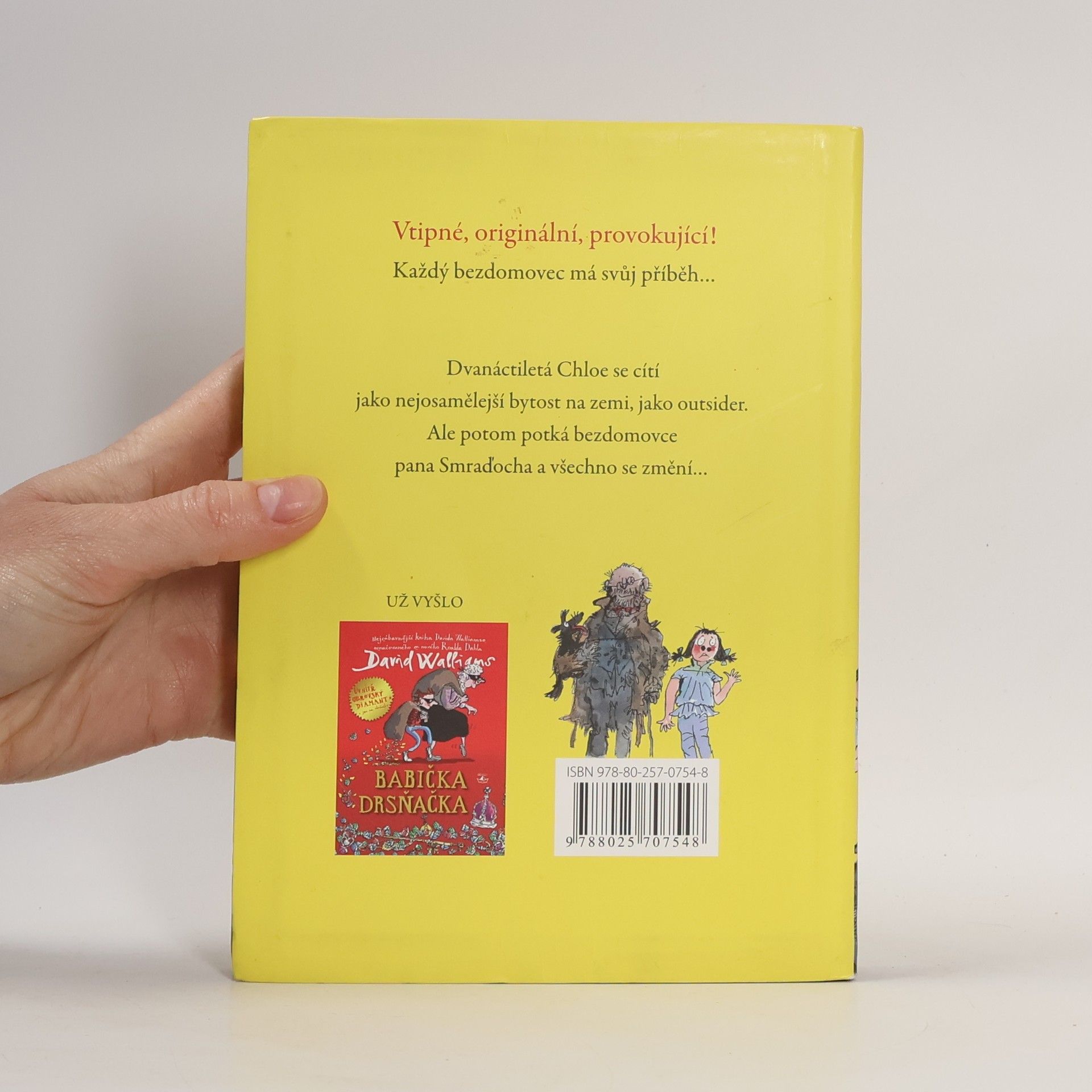 Další humorný příběh pro mladé čtenáře od autora knihy Babička drsňačka. Kouzelně neuctivý a zároveň dojemný příběh vypráví o tajemstvích, přátelství i docela obyčejném životě. Pan Smraďoch patří do kategorie hodně divných románových hrdinů. Žije na lavičce v parku a svému jménu dělá opravdu čest. Je to ten nejsmradlavější smraďoch pod sluncem. Dvanáctileté Chloe to ale rozhodně nebrání v tom, aby se s ním spřátelila. Jasně, páchne, ale na druhou stranu nikdy na ni nikdo nebyl tak milý jako on. A tak se Chloe rozhodne, že milého bezdomovce tajně ubytuje v kůlně na zahradě svých rodičů. Jenže schovejte takového smraďocha! Chloe brzy pozná, že některá tajemství můžou být velmi nebezpečná a od katastrofy je dělí jen malinký krůček.
