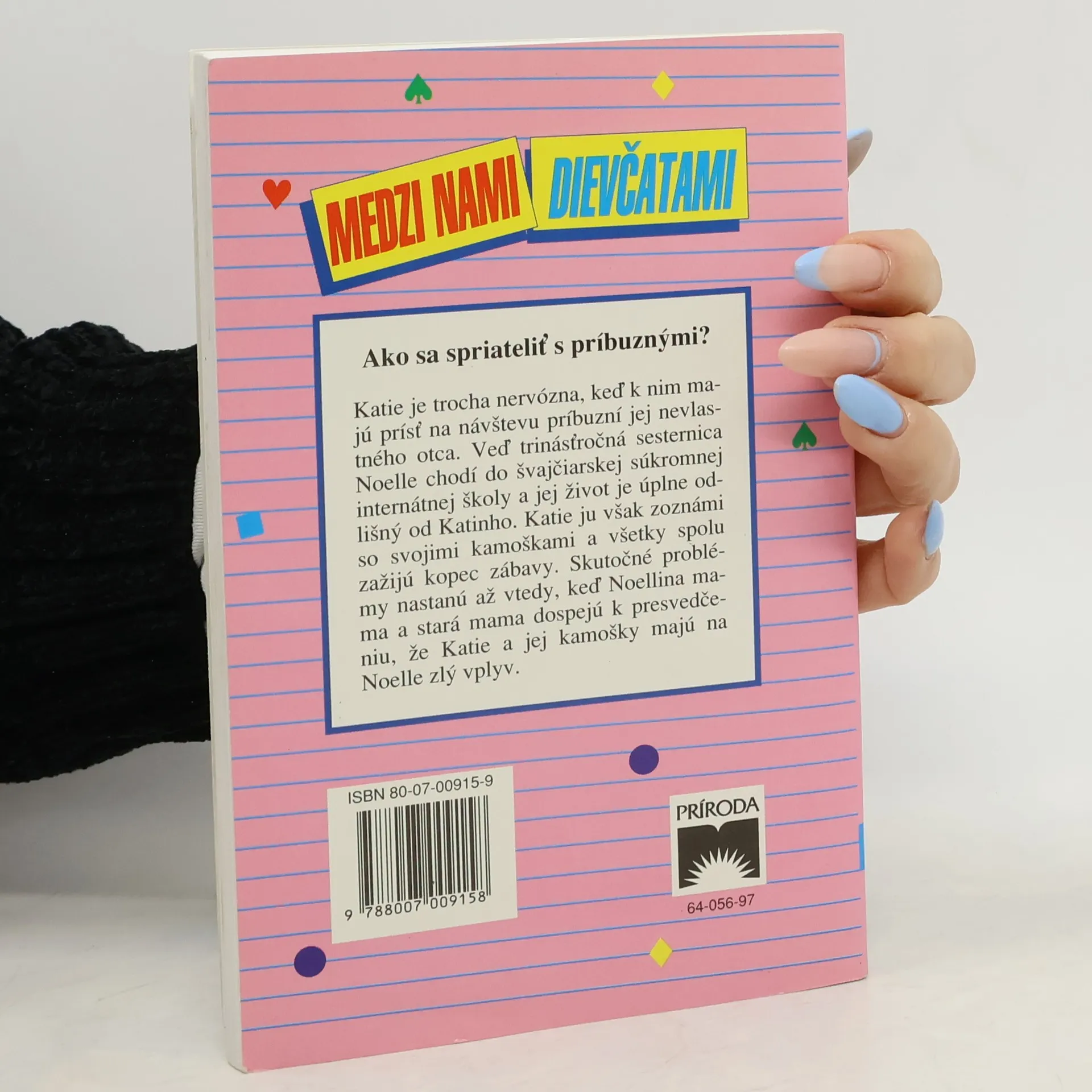 Ako sa spriateliť s príbuznými? Katie je trocha nervózna, keď k nim majú prísť na návštevu príbuzní jej nevlastného otca. Veď trinásťročná sesternica Noelle chodí do švajčiarskej súkromnej internátnej školy a jej život je úplne odlišný od Katinho. Katie ju však zoznámi so svojimi kamoškami a všetky spolu zažijú kopec zábavy. Skutočné problémy nastanú až vtedy, keď Noellina mama a stará mama dospejú k presvedčeniu, že Katie a jej kamošky majú na Noelle zlý vplyv.