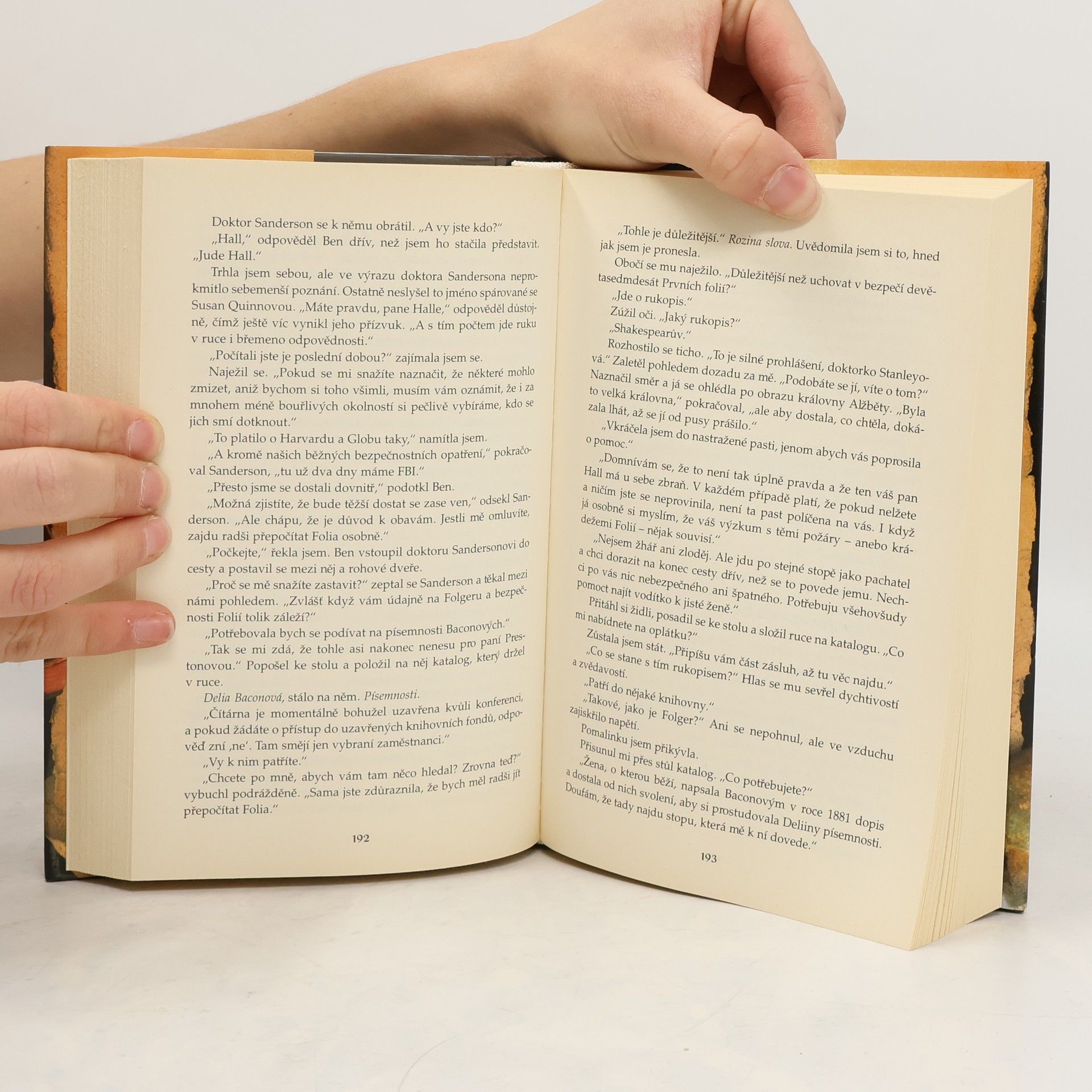 Kate Stanleyová prožívá vrcholné okamžiky svého života – režíruje představení Hamleta v nově zrekonstruovaném divadle Svět v Londýně. Odpoledne před premiérou ji navštíví dávná přítelkyně Roz, výstřední harvardská profesorka, a předá jí krabičku ve zlatém papíru, která má obsahovat převratný objev. Ovšem než Kate stačí vyzvědět, oč se jedná, vyhoří divadlo do základů a Roz je zavražděna způsobem, který nikoli náhodou připomíná smrt Hamletova otce. V krabičce najde Kate první dílek shakespearovské záhady, která ji přiměje pustit se do smrtelně nebezpečného pátrání. Z Londýna na Harvard, na americký Západ a zase zpátky – tam všude ji vede řetězec stop ukrytých ve starých denících a listinách. Kate pátrá po jednom z největších tajemství literární historie a na každém kroku jen o vlásek uniká vrahovi, jenž se nepokrytě inspiruje Shakespearovým dílem. Strhující děj nenechá čtenáře vydechnout; přenáší ho ze sedmnáctého století do současnosti, z divadelních jevišť do zlatokopeckých táborů a univerzitních knihoven, z jedné země do druhé. Najde Kate dávno ztracenou Shakespearovu hru? Podaří se jí odhalit, kdo byl William Shakespeare? Anebo se dobere zjištění, že oslavovaný dramatik vůbec neexistoval?