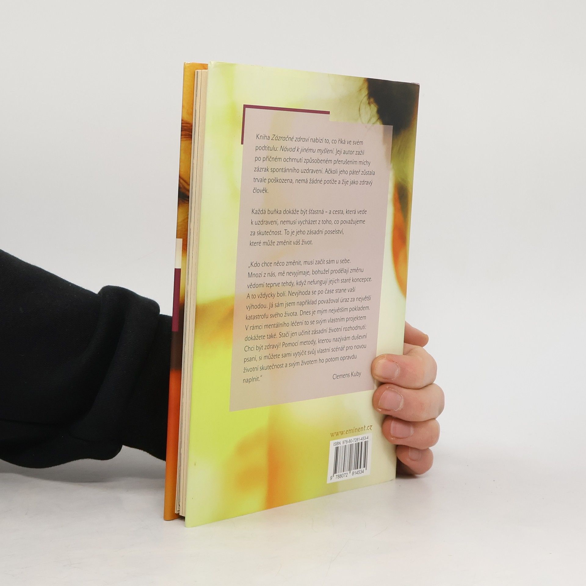 Kniha nabízí to, co říká ve svém podtitulu: Návod k jinému myšlení. Její autor zažil po příčném ochrnutí způsobeném přerušením míchy zázrak spontánního uzdravení. Ačkoli jeho páteř zůstala trvale poškozena, nemá žádné potíže a žije jako zdravý člověk. Každá buňka dokáže být šťastná - a cesta, která vede k uzdravení, nemusí vycházet z toho, co považujeme za skutečnost. To je jeho zásadní poselství, které může změnit váš život. "Kdo chce něco změnit, musí začít sám u sebe. Mnozí z nás, mě nevyjímaje, bohužel prodělají změnu vědomí teprve tehdy, když nefungují jejich staré koncepce. A to vždycky bolí. Nevýhoda se po čase stane vaší výhodou. Já sám jsem například považoval úraz za největší katastrofu svého života. Dnes je mým největším pokladem. V rámci mentálního léčení to se svým vlastním projektem dokážete také. Stačí jen učinit zásadní životní rozhodnutí: Chci být zdravý! Pomocí metody, kterou nazývám duševní psaní, si můžete sami vytýčit svůj vlastní scénář pro novu životní skutečnost a svým životem ho potom opravdu naplnit." Clemens Kuby
