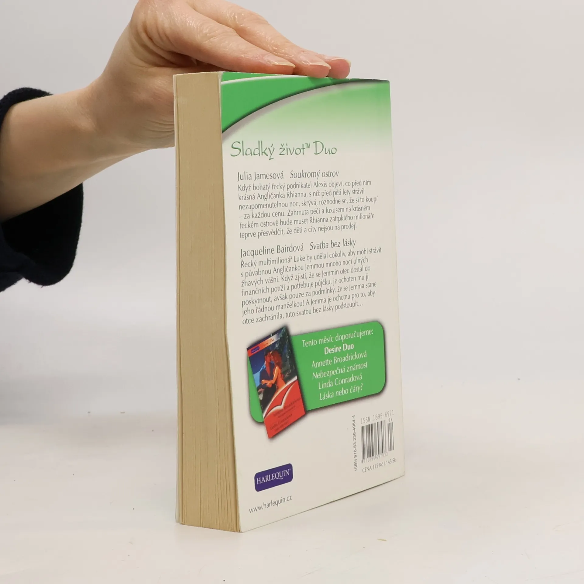 Soukromý ostrov Když bohatý řecký podnikatel Alexis objeví, co před ním krásná Angličanka Rhianna, s níž před pěti lety strávil nezapomenutelnou noc, skrývá, rozhodne se, že si to koupí – za každou cenu. Zahrnuta péčí a luxusem na krásném řeckém ostrově bude muset Rhianna zatrpklého milionáře teprve přesvědčit, že děti a city nejsou na prodej! Svatba bez lásky Řecký milionář Luke by udělal cokoliv, aby mohl strávit s půvabnou Angličankou Jemmou mnoho nocí plných žhavých vášní. Když zjistí, že se Jemmin otec dostal do finančních potíží a potřebuje půjčku, je ochoten mu ji poskytnout, avšak pouze za podmínky, že se Jemma stane jeho řádnou manželkou! A Jemma je ochotna pro to, aby otce zachránila, tuto svatbu bez lásky podstoupit...
