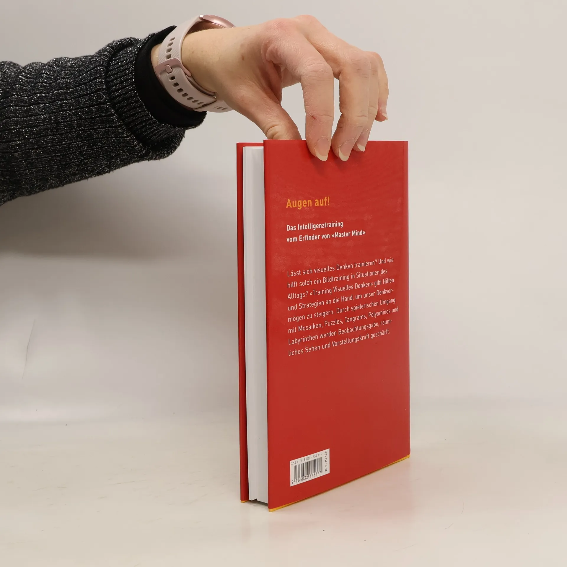 Das Intelligenztraining vom Erfinder von 'Master Mind' Lässt sich visuelles Denken trainieren? Und wie hilft solch ein Bildtraining in Situationen des Alltags? Dieses 'Training Visuelles Denken' gibt Hilfen und Strategien an die Hand, um unser Denkvermögen zu steigern. Durch spielerischen Umgang mit Mosaiken, Puzzles, Tangrams, Polyominos und Labyrinthen werden Beobachtungsgabe, räumliches Sehen und Vorstellungskraft geschärft. 'Training Visuelles Denken' – ein Buch, das mit Hilfe des beigefügten Spiele-Sets ohne Vorkenntnisse einsetzbar ist: In zahlreichen Übungen und Anregungen lädt es mit einem 'Augen auf!' dazu ein, sich geistig wach zu halten.