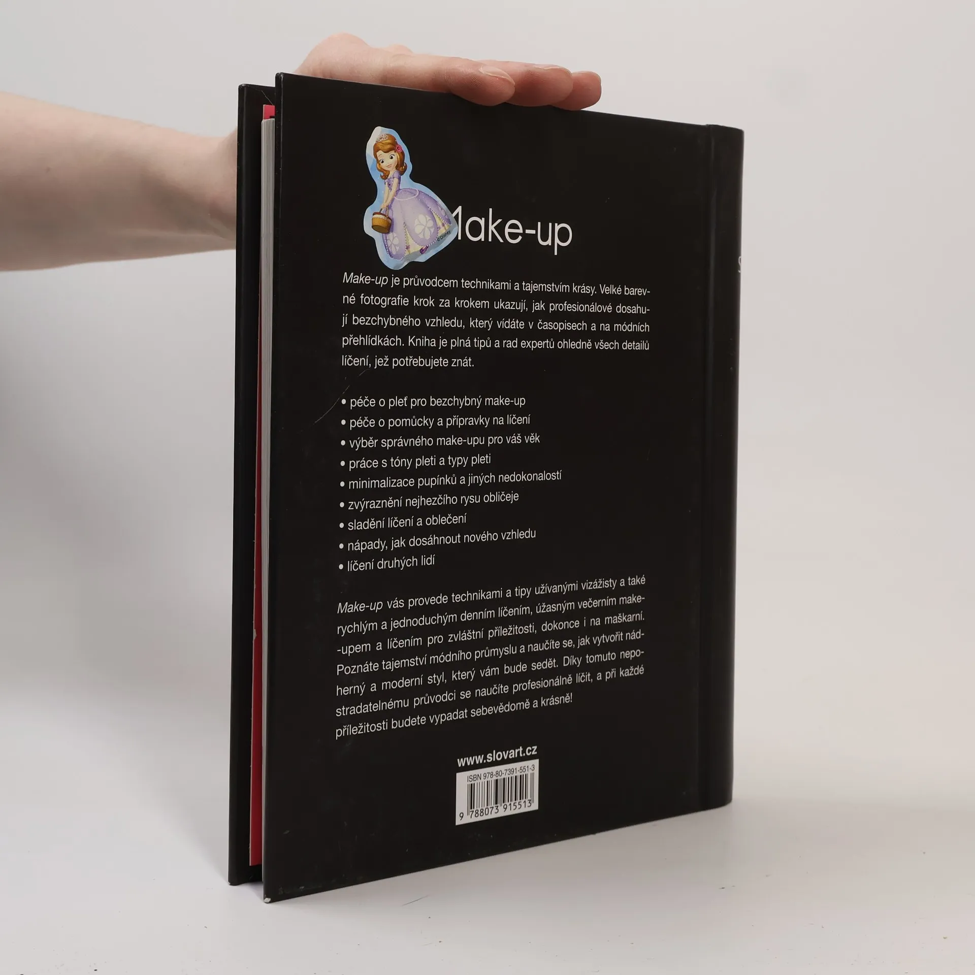 Make-up je průvodce technikami a tajemstvím krásy. Velké barevné fotografie krok za krokem ukazují, jak profesionálové dosahují bezchybného vzhledu, který vídáte v časopisech a na módních přehlídkách. Kniha je plná tipů a rad expertů ohledně všech detailů líčení, jež potřebujete znát. – péče o pleť pro bezchybný make-up – péče o pomůcky a přípravky na líčení – výběr správného make-upu pro Vás věk – práce s tóny pleti a typy pleti – minimalizace pupínků a jiných nedokonalostí – zvýraznění nejhezčího rysu obličeje – sladění líčení a oblečení – nápady, jak dosáhnout nového vzhledu – líčení druhých lidí