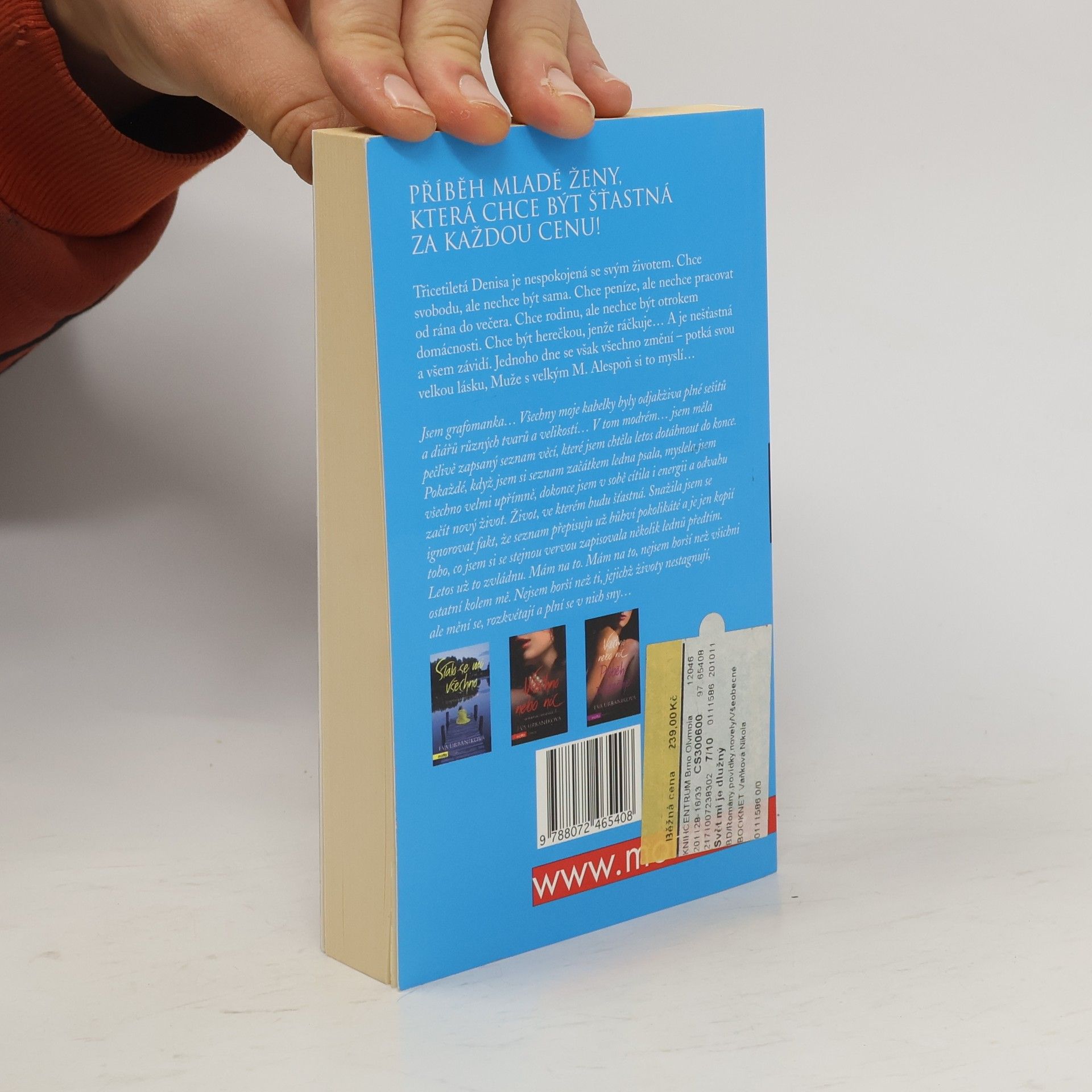 Příběh mladé ženy, která chce být šťastná za každou cenu! Další bestseller od nejprodávanější slovenské autorky současnosti. Autorka uvádí na scénu novou hrdinku – třicátnici Denisu, která chce být konečně šťastná. Denisa se snaží najít vnitřní rovnováhu, ale hledá ji na nesprávných místech... Hrdinka zjišťuje, že její manželství není ideální. Rozhodne se pro svobodu, ale nedokáže být sama. Také neví, co si počít s vlastním životem, s kariérou, s rodinnými vazbami. Snaží se najít vnitřní rovnováhu, ale hledá ji na nesprávných místech. Podaří se jí uniknout z bludného kruhu vlastního života?