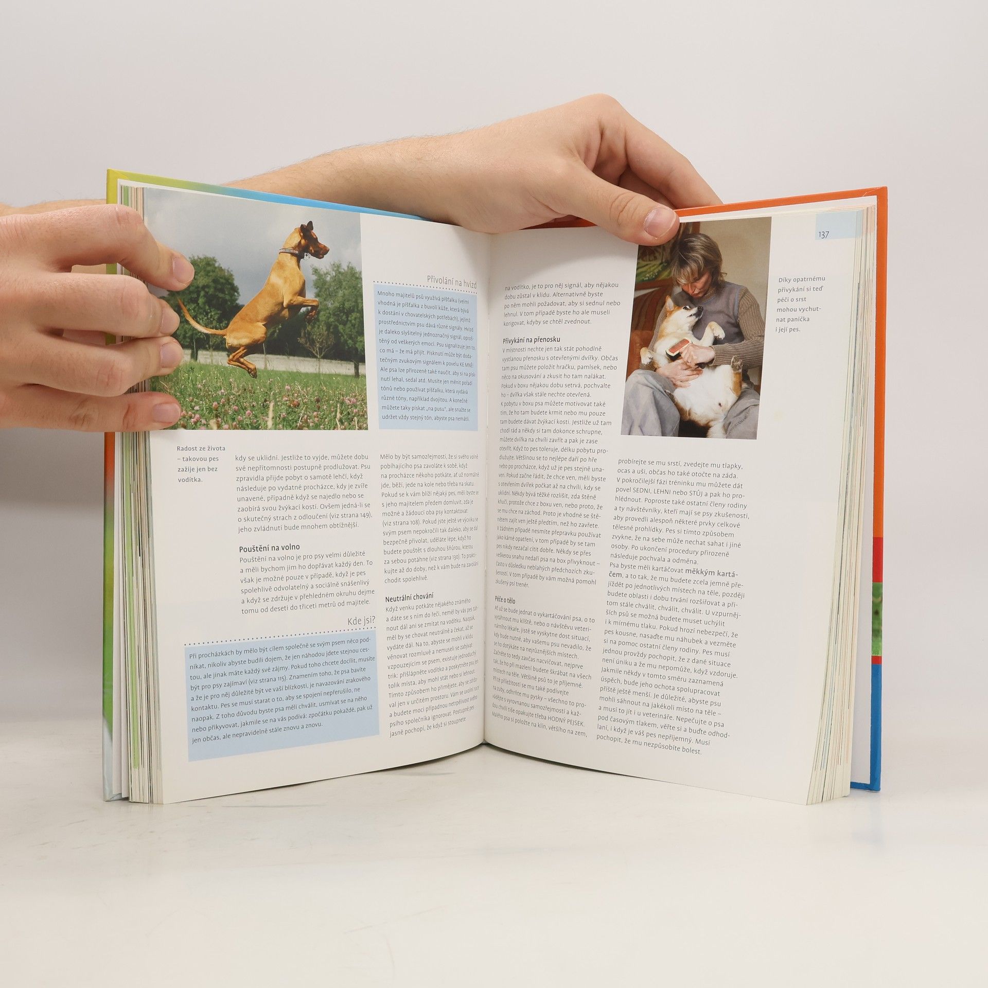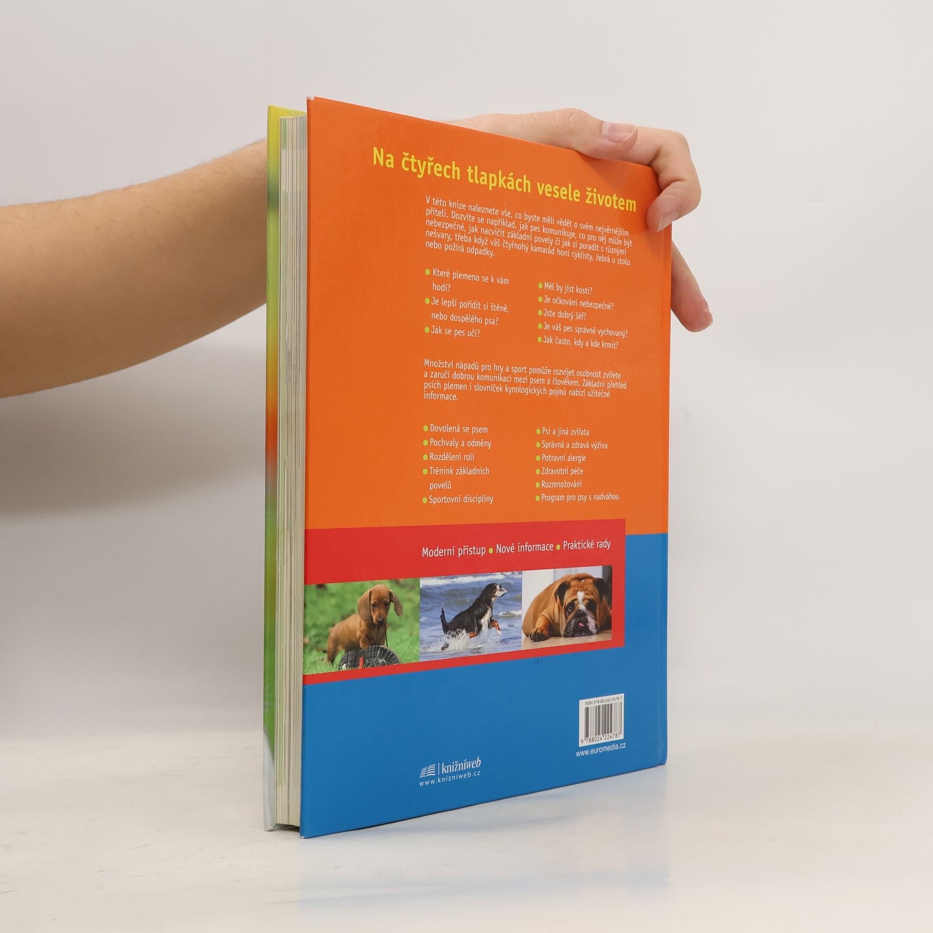 Na čtyřech tlapkách vesele životem V této knize naleznete vše, co byste měli vědět o svém nejvěrnějším příteli. Dozvíte se například, jak pes komunikuje, co pro něj může být nebezpečné, jak nacvičit základní povely či jak si poradit s různými nešvary, třeba když váš čtyřnohý kamarád honí cyklisty, žebrá u stolu nebo požírá odpadky. • Které plemeno se k vám hodí? • Je lepší pořídit si štěně, nebo dospělého psa? • Jak se pes učí? • Měl by jíst kosti? • Je očkování nebezpečné? • Jste dobrý šéf? • Je váš pes správně vychovaný? • Jak často, kdy a kde krmit? Množství nápadů pro hry a sport pomůže rozvíjet osobnost zvířete a zaručí dobrou komunikaci mezi psem a člověkem. Základní přehled psích plemen i slovníček kynologických pojmů nabízí užitečné informace. • Dovolená se psem • Pochvaly a odměny • Rozdělení rolí • Trénink základních povelů • Sportovní disciplíny • Psi a jiná zvířata • Správná a zdravá výživa • Potravní alergie • Zdravotní péče • Rozmnožování • Program pro psy s nadváhou Moderní přístup • Nové informace • Praktické rady