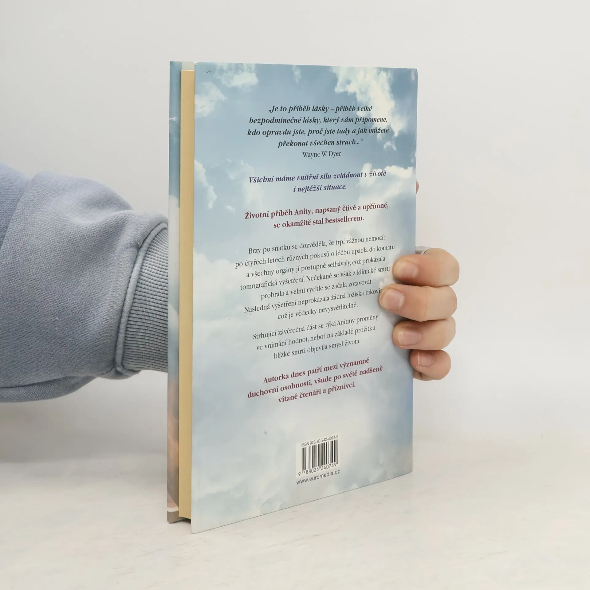 Životní příběh Anity, napsaný čtivě a upřímně, se okamžitě stal bestsellerem a autorka dnes patří mezi významné osobnosti, nadšeně vítané čtenáři po celém světě. Brzy po sňatku u ní diagnostikovali rakovinu, po čtyřech letech různých pokusů o léčbu upadla do kómatu a všechny orgány jí postupně selhávaly, což prokázala tomografická vyšetření. Nečekaně se však z klinické smrti probrala a velmi rychle se začala zotavovat. Následná vyšetření neprokázala žádná ložiska rakoviny, což je zcela neuvěřitelné a vědecky nevysvětlitelné. Strhující závěrečná část se týká autorčiny proměny ve vnímání hodnot, neboť na základě prožitku blízké smrti objevila smysl života. Anita Moorjani ve své inspirativní autobiografii líčí, jak jí po čtyřech letech boje se zákeřnou nemocí tělo vypovědělo službu. Dostala se do neobyčejného stavu zážitku blízké smrti a v něm si uvědomila svou vlastní hodnotu… i skutečnou příčinu své nemoci. Když nabyla vědomí, její stav se zlepšoval takovou rychlostí, že ji za několik týdnů bez jakýchkoli známek rakoviny propustili z nemocnice. Vyrůstala v tradiční hinduistické rodině uprostřed převážně čínské a britské společnosti a odmalička ji silně ovlivňovaly nejrůznější kulturní a náboženské zvyklosti.