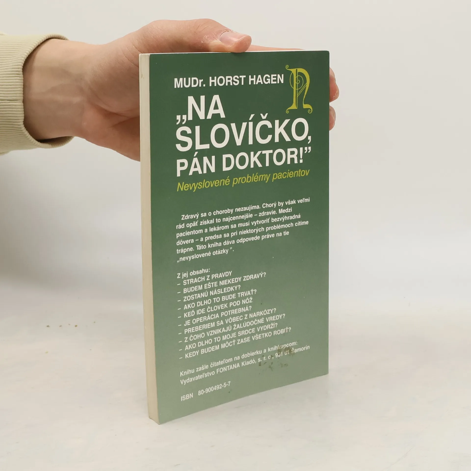 Nevyslovené problémy pacientov Zdravý sa o choroby nezaujíma. Chorý by však veľmi rád opäť získal to najcennejšie - zdravie. Medzi pacientom a lekárom sa musí vytvoriť bezvýhradná dôvera - a predsa sa pri niektorých problémoch cítime trápne. Táto kniha dáva odpovede práve na tie „nevyslovené otázky“. Z obsahu: Strach z pravdy, Zostanú následky? Je operácia potrebná?, Keď ide človek pod nôž, Z čoho vznikajú žalúdočné vredy, Kedy budem môcť zasa všetko robiť?, Preberiem sa vôbec z narkózy?.......