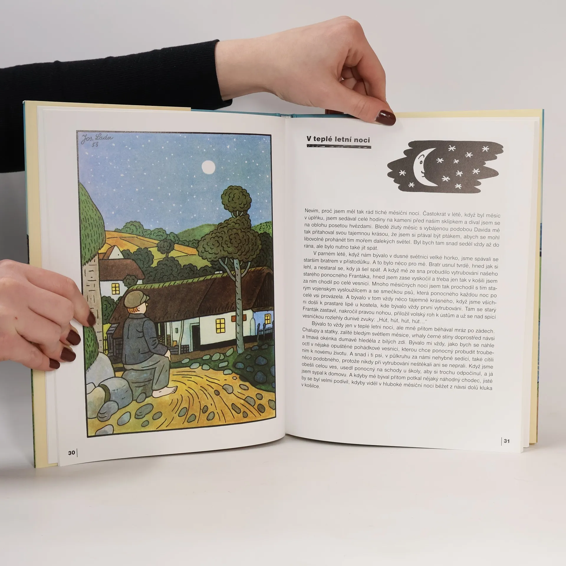Od jara až do Vánoc s obrázky Josefa Lady, veselými říkankami a vyprávěním, jak se dříve žilo na venkově. Půvabné, nadčasové ilustrace Josefa Lady doprovodil svými verši Michal Černík. Vydání v originální grafické úpravě přináší známé texty Josefa Lady, v nichž vzpomíná na své dětství v Hrusicích (Jak jsem zvonil poledne, jak jsme pekli brambory, Pohádka o narození Jezulátka), jak jej zažíval po celý rok. Atmosféra české idyly je prohloubena citlivými verši oblíbeného básníka Michala Černíka. Nakladatelská anotace.