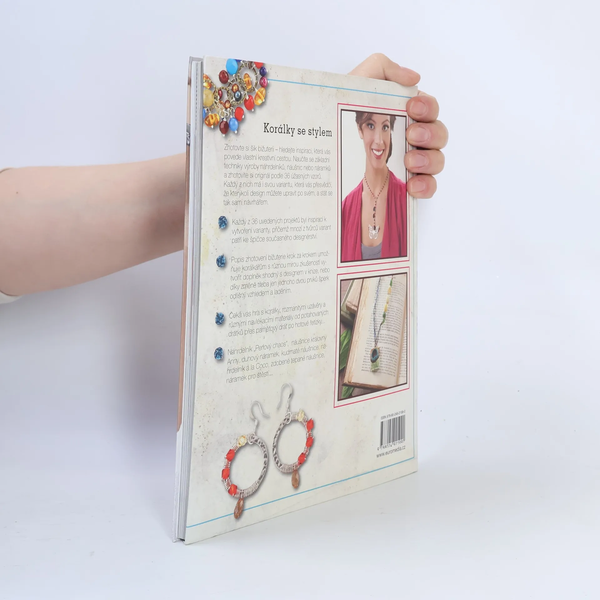 Nosíte rádi šik bižuterii, která přitáhne pozornost? Naučíte se základní techniky výroby a můžete si navrhnout a zhotovit originální náhrdelník, náramek či náušnici podle některého ze 36 úžasných vzorů. Každý z nich má i svou variantu, která vás přesvědčí, že kterýkoli design můžete upravit po svém, a stát se tak návrhářem. Čeká vás hra s korálky, rozmanitými uzávěry a různými navlékacími materiály od potahovaných drátků přes paměťový drát po hotové řetízky...