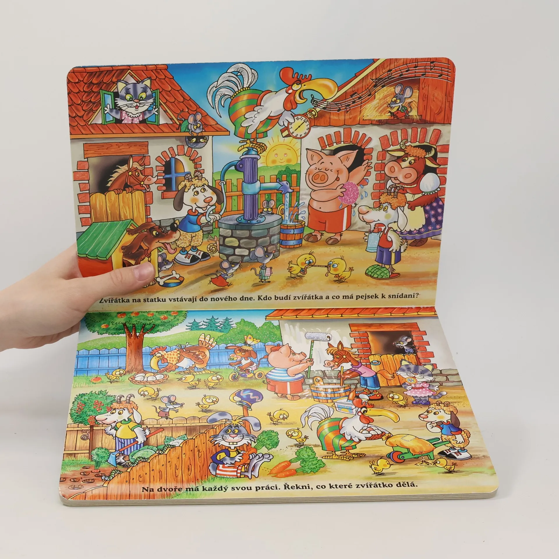 Leporelo s obrázky zvířátek ze statku, doplněné jednoduchými úkoly. Děti poznávají zvířátka na obrázku a seznamují se s jejich životem na statku Leporelo rozvíjí logické myšlení a představivost dětí.
