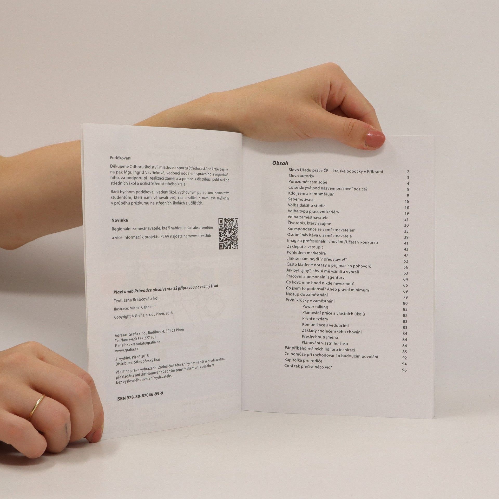 Publikace PLAV! aneb průvodce absolventa SŠ přípravou na reálný život pomáhá mladým lidem rozhodnout se, jakým směrem se ubírat v budoucí kariéře. Zohledňuje vývoj pracovního trhu v ČR i ve světě a pomáhá čtenářům identifikovat jejich silné stránky pro profesní život. Je určena nejen studentům, ale i jejich rodičům a může sloužit učitelům jako pomůcka při kariérní výchově. Praktický průvodce je psán vtipnou formou a obsahuje mnoho příkladů a odkazů. V závěru jsou uvedeny příběhy úspěšných lidí, které ukazují, jak dosáhnout spokojenosti v práci a osobním životě. Na konci čtenáři najdou aktuální prezentaci místních zaměstnavatelů, kteří chtějí spolupracovat s absolventy. Publikace je propojena s webovou stránkou www.plav.club, která nabízí užitečné odkazy a informace o firmách. Autorka Mgr. Jana Brabcová má 18 let zkušeností v personálním rozvoji a kariérovém poradenství a je autorizovanou osobou pro kariérové poradenství podle zákona 179/2006 Sb. Vydavatel sbírá ohlasy na knihu a každoročně ji inovuje na základě zpětné vazby a změn na trhu. Publikace vychází ve spolupráci s odbory školství a úřady práce. Studenti posledních ročníků středních škol a učilišť dostávají knihu zdarma.