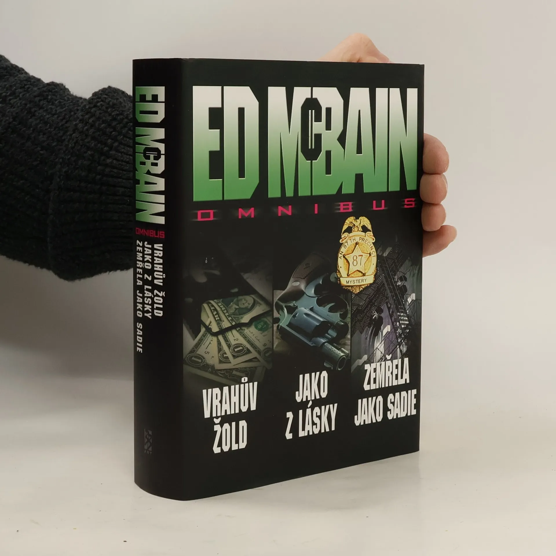 Vrahův žold Byl pohledný, elegantní, zazobaný – ale mrtvý! Vyděrač Sy Kramer, který zašel příliš daleko, vyfasoval svůj poslední žold – kulku do hlavy. Která z jeho obětí mohla ztratit tolik, že se uchýlila k vraždě? Detektivové z 87. revíru musí najít vraha protřelého vyděrače, než udeří znovu. Vyděšené oběti, které zastřelenému zločinci platily za mlčení, však policii vůbec nepomáhají… Jako z lásky Tommy a Irenese podle dopisu na rozloučenou rozhodli spáchat společnou sebevraždu otravou svítiplynem. Zpočátku vše nasvědčuje tomu, že se jedná o sebevraždu milenců, ale detektivům Carellovi a Hawesovi jejich řemeslo velí na první zdání nespoléhat. Při pátrání je Carella surově napaden neznámým mužem… Zemřela jako Sadie Steve Carella podezírá muže z vraždy jeho manželky, ale rychle se podaří vypátrat narkomana, který se přizná, že se do bytu vloupal a Sarah Fletcherovou zavraždil. Je však vyhráno? Bert Kling se zase jednou zakouká do jedné slečny a k tomu ještě nosí náramek od Meyera Meyera. A za pár dní jsou Vánoce…