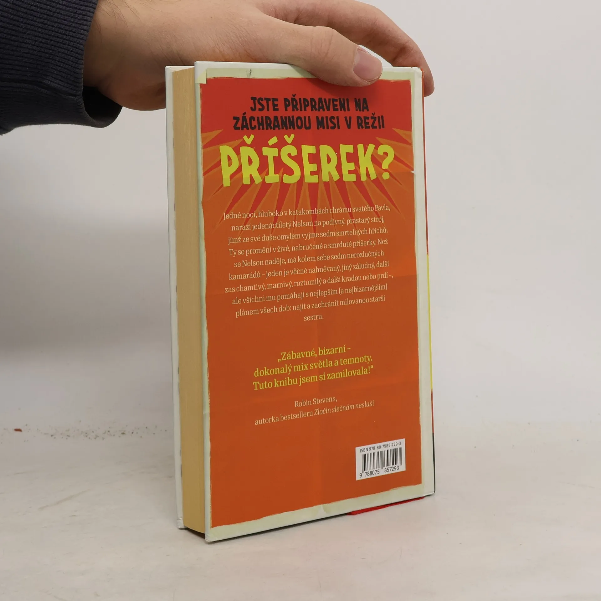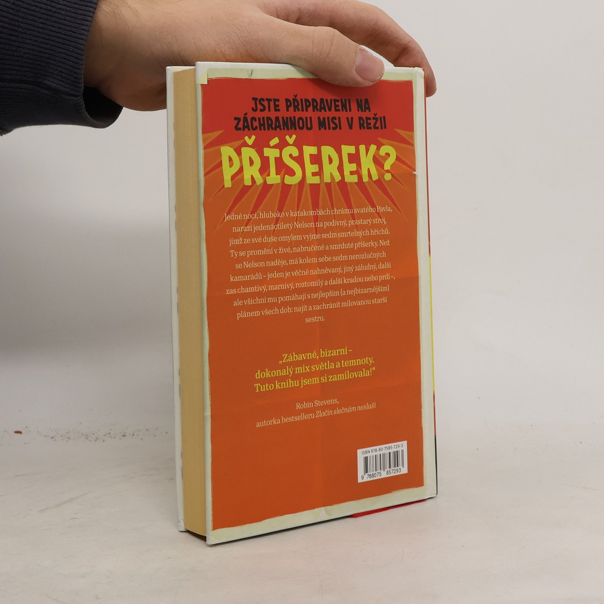 Kdo potřebuje kamarády, když máte PŘÍŠERKY? Všechno se odehrálo tak rychle a bylo to tak… šílené. Bylo to, jako by někdo vzal realitu, proměnil ji v puzzle, ty potom hodil na podlahu a řekl: „Poskládejte je rychle zpátky dohromady!" A mezitím po nich skákal a tančil navlečený v oblečku klauna a troubil u toho na trumpetu. Když se Nelsonova milovaná starší sestra ztratí na školním výletě, Nelson je zdrcený – je pro něj těžké najít si přátele a jeho sestra je jediný člověk, s nímž může mluvit. Jeho rodiče se připojí k pátracímu týmu a Nelsona předají do péče šíleného strýčka Poga. Strýček Pogo je údržbářem v katedrále sv. Pavla a právě tam Nelson narazí na stovky let pohřbený stroj, který vynalezl Christopher Wren. Stroj navržený k extrakci sedmi smrtelných hříchů má ovšem závadu – jakmile jsou hříchy odstraněny, stanou se z nich živé příšery, které potom hříšníka provázejí až do skonání věků (anebo, pokud je zvláště hříšný, ho rovnou snědí). Nelson ze své malé dušičky omylem extrahuje sedm příšer – jsou ohavné, hašteřivé, smrdí a jsou to poslední, co chlapec ve svém životě potřebuje. Naštěstí jsou poměrně neškodné, protože Nelson je docela hodné dítě. Když se dozví o jejich schopnostech, uvědomí si, že příšerky půjde využít pro dobrou věc. Společně se vydávají na cestu kolem světa, aby nalezli Nelsonovu ztracenou sestru.
