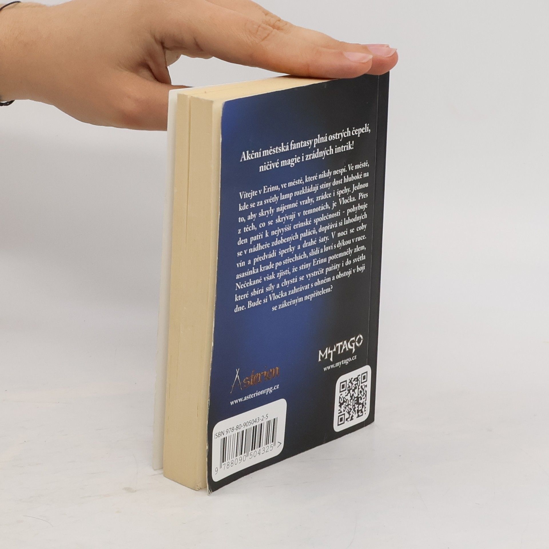 Akční městská fantasy plná ostrých čepelí, ničivé magie i zrádných intrik! Vítejte v Erinu, ve městě, které nikdy nespí. Ve městě, kde se za světly lamp rozkládají stíny dost hluboké na to, aby skryly nájemné vrahy, zrádce i špehy. Jednou z těch, co se skrývají v temnotách, je Vločka. Přes den patří k nejvyšší erinské společnosti - pohybuje se v nádheře zdobených paláců, dopřává si lahodných vín a předvádí šperky a drahé šaty. V noci se coby asasínka krade po střechách, slídí a loví s dýkou v ruce. Nečekaně však zjistí, že stíny Erinu potemněly zlem, které sbírá síly a chystá se vystrčit pařáty i do světla dne. Bude si Vločka zahrávat s ohněm a obstojí v boji se zákeřným nepřítelem?
