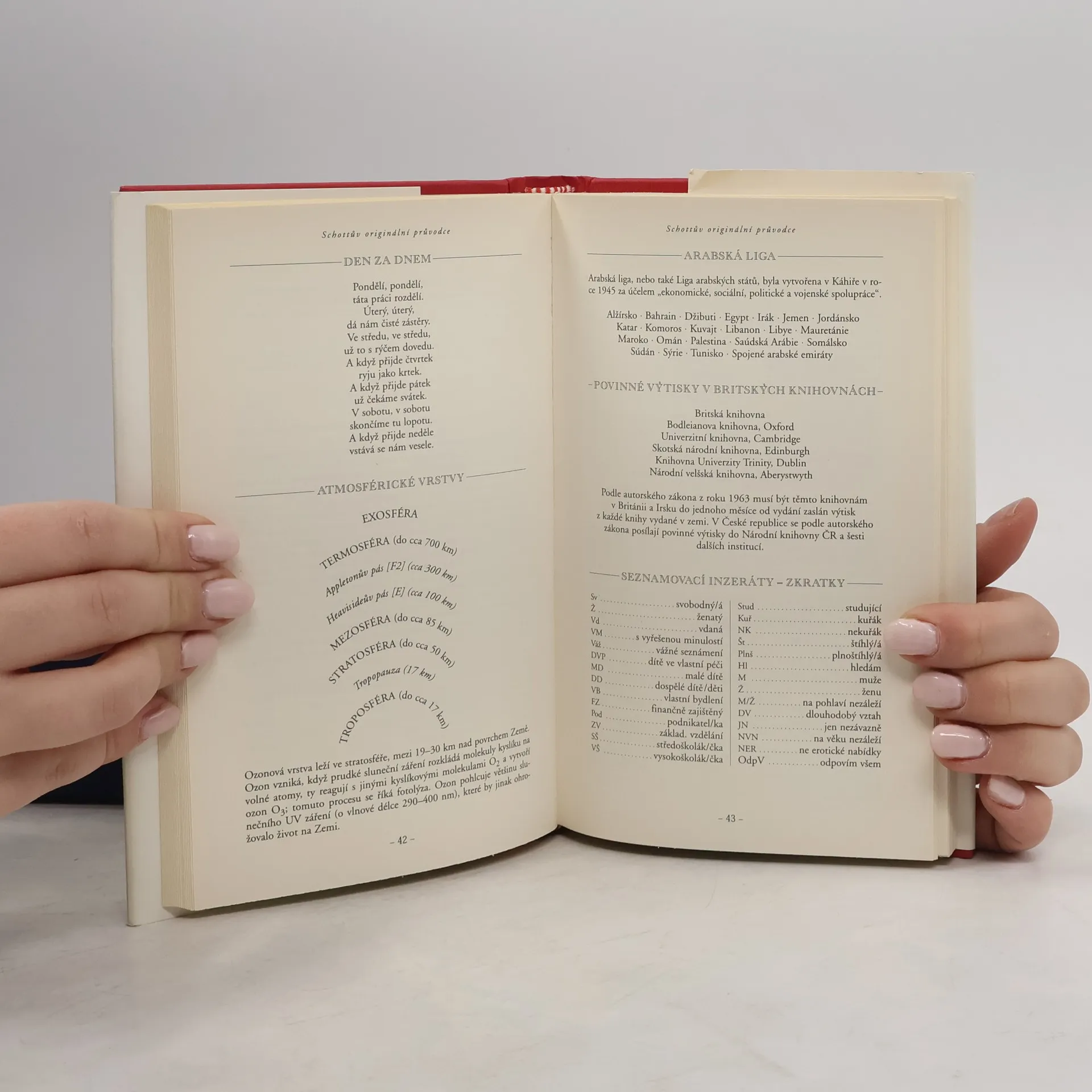 Schottův „rozum do kapsy“, unikátní sbírka nejzajímavějších trivialit, je knížkou, která se nedá přečíst na jeden zátah, ale ani nikdy odložit. V jaké jiné knížce najdete rejstřík, ve kterém jsou zařazeny míry bot, znaková řeč a sedm smrtelných hříchů, zdvořilostní zásady soubojů a Sněhurčini trpaslíci, velikosti vajec a výsledky veslařských závodů? Ve které knize byste našli pohromadě názvy golfových úderů, pravidla kriketu, nejdelší výrazy, sázkařský slang nebo popis guadeloupské vlajky? Kde jinde než v Schottově originálním průvodci můžete narazit na kočku Johna Lennona, dodavatele královských dud, dvanáct Herkulových úkolů nebo způsoby brutálních vražd, se kterými se setkáte u slečny Marplové? Schottův originální průvodce je zábavná, překvapující a naprosto nezbytná kniha.