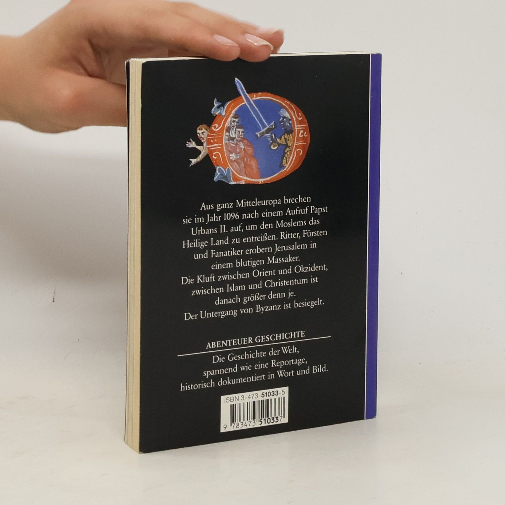 Aus ganz Mitteleuropa brechen sie im Jahre 1096 nach einem Aufruf Papst Urbans II. auf, um den Moslems das Heilige Land zu entreißen. Ritter, Fürsten und Fanatiker erobern Jerusalem in einem blutigen Massaker. Die Kluft zwischen Orient und Okzident, zwischen Islam und Christentum ist danach größer denn je. Der Untergang von Byzanz ist besiegelt. Abenteuer Geschichte. Die Geschichte der Welt, spannend wie eine Reportage, historisch dokumentiert in Wort und Bild.