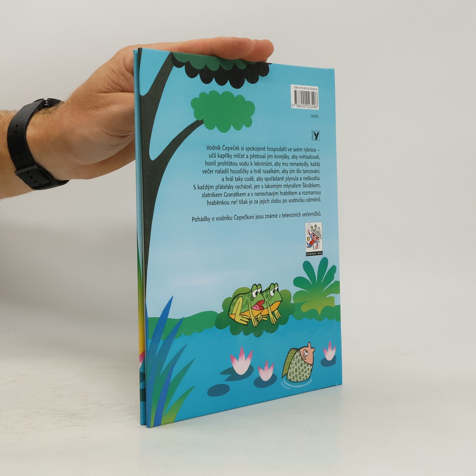 Vodník Čepeček si spokojeně hospodařil ve svém rybníce učil kapříky mlčet a pěstoval jim korejšky, aby nehladovali, honil prohřátou vodu k leknínům, aby mu nenastydly, každý večer naladil housličky a hrál rusalkám, aby jim šlo tancování, a hrál taky vodě, aby spořádaně plynula a neškodila. S každým přátelsky vycházel, jen s lakomým mlynářem Škrábkem, zlatníkem Granátkem a s nenechavým hrabětem a rozmarnou hraběnkou ne! Však je také za jejich zlobu po vodnicku odměnil. Pohádky o dobrém vodníku Čepečkovi od Václava Čtvrtka znáte též z televizních večerníčků.