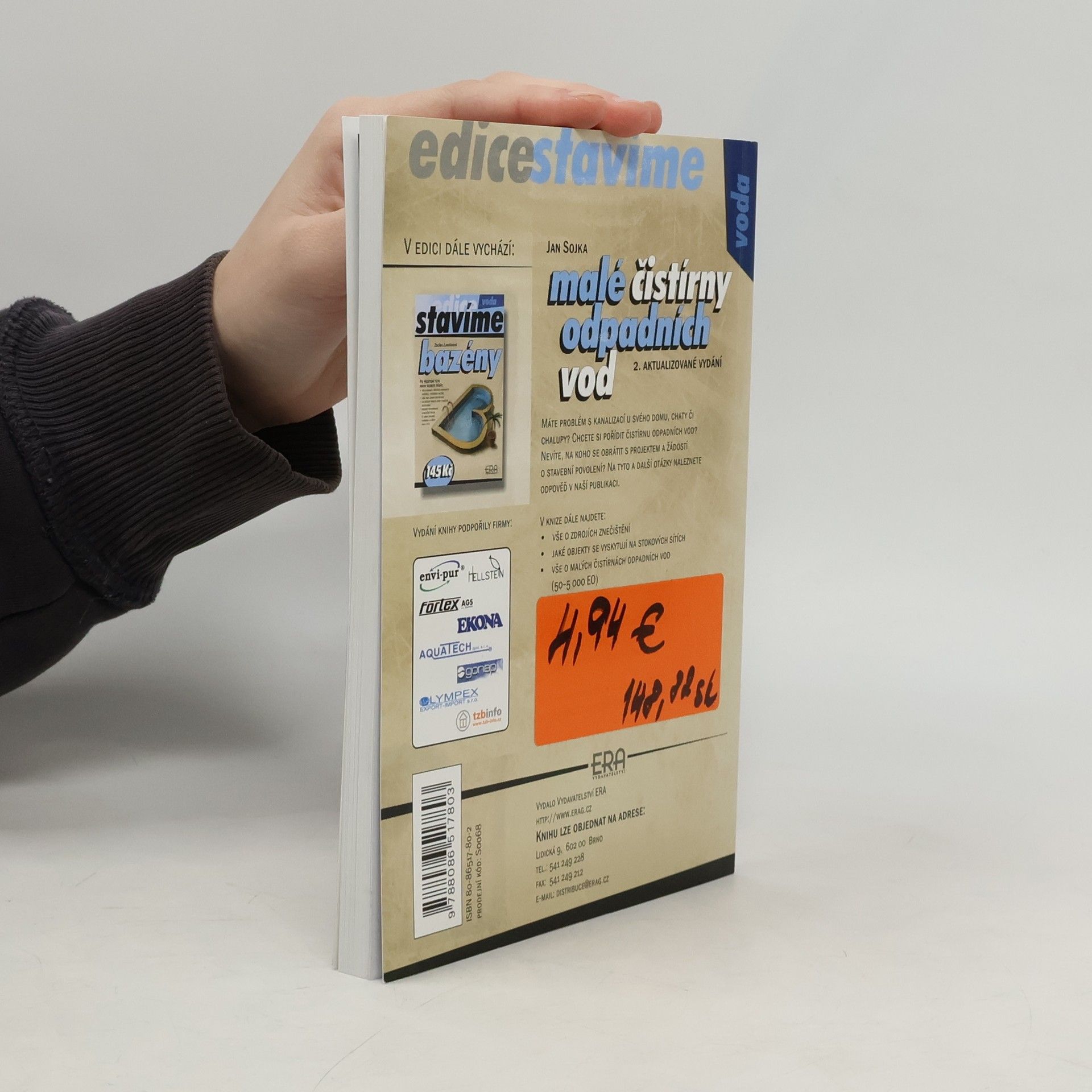 Kniha poskytuje přehled o čistírnách odpadních vod (ČOV) a to jak malých ČOV (50-5000EO), ale také o domovních ČOV (1-50EO) a o všem, co s těmito objekty souvisí. Např.: zdroje znečištění, výpočet odpadních vod, provoz a údržba stokové sítě, volba způsobu čištění odpadních vod ze zdrojů. Najdete zde také vše o zajištění stavebního povolení pro tyto objekty.