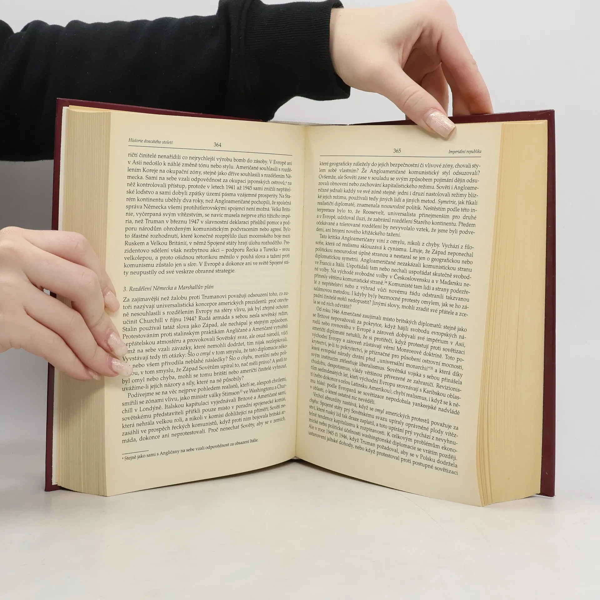 Francouzský filozof a sociolog Raymond Aron autor desítek filozofických a politologických studií a esejů, pojal už v polovině našeho století záměr zpracovat dějiny právě probíhajícího století. Dešifrovat jejich význam a osvětlit tak všechny sféry moderní společnosti: ekonomii, společenské vztahy, politické režimy, vztahy mezi zeměmi a národy, diplomacii, ideologické rozpory. Aronův záměr zůstal nedokončen, ale veškerá jeho činnost a celé jeho dílo směřovaly k naplnění původního úmyslu. V knize jsou soustředěny všechny podstatné studie a rozbory, zaznamenávající proměnu dosud neukončeného období, které bylo poznamenáno mnoha dramatickými událostmi, vzestupem a pádem říší, zrozením velkého počtu států a změnou poměru sil. Ke klíčovým pasážím patří zásadní rozbor vztahu USA – SSSR, studie o státním systému v USA, O Marshallově plánu, o zániku koloniálních říší v našem století, ale i studie o francouzské Páté republice a o prezidentské moci.