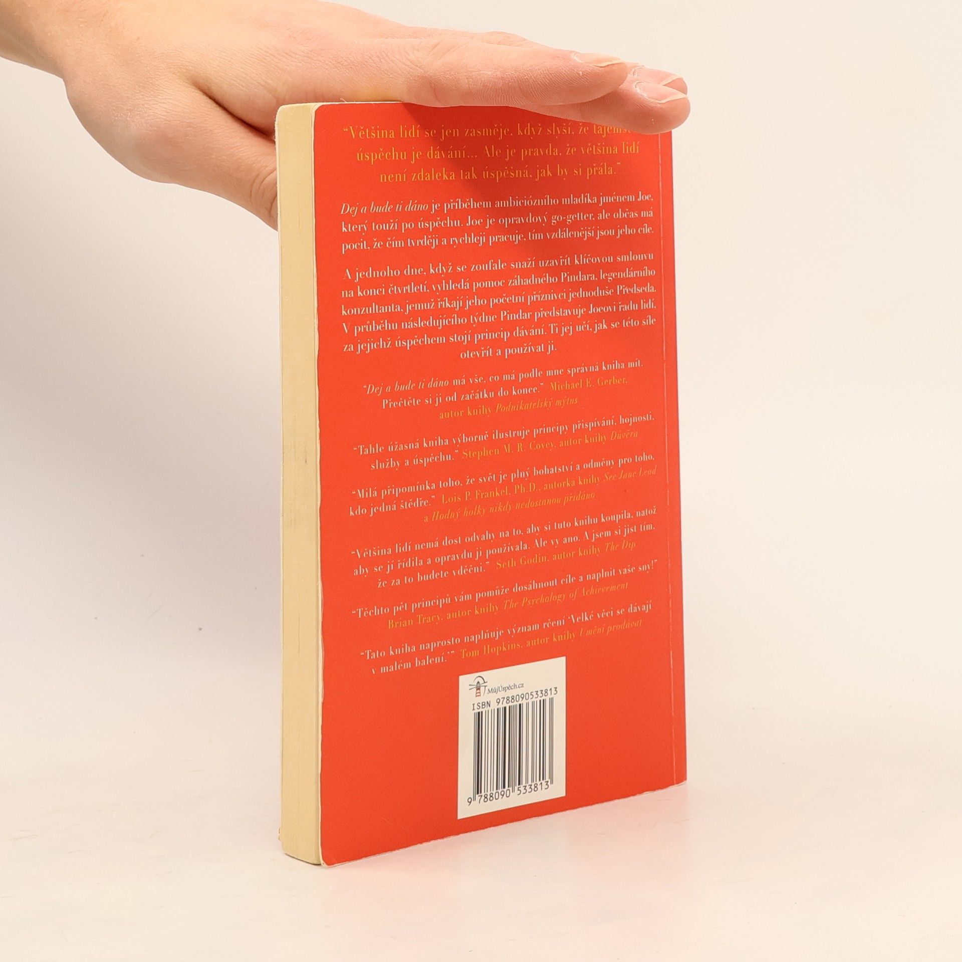 Kniha The Go – Giver Dej a bude ti dáno vypráví příběh o ambiciózním mladém muži jménem Joe, který touží po úspěchu. Joe je opravdový go-getter, ačkoli občas se mu zdá, že čím tvrději a rychleji pracuje, tím vzdálenější se jeho cíle zdají. A tak jednoho dne, když se zoufale snaží dotáhnout klíčový obchod na konci špatného čtvrtletí, vyhledá rady tajemného Pindara, legendárního konzultanta, kterému jeho známí říkají prostě Předseda. The Go – Giver Dej a bude ti dáno je ispirativní příběh, který vás zahřeje u srdce. Je předávaný s vtipem a elegancí a dává nový význam známému přísloví „Dej a bude ti dáno.“.