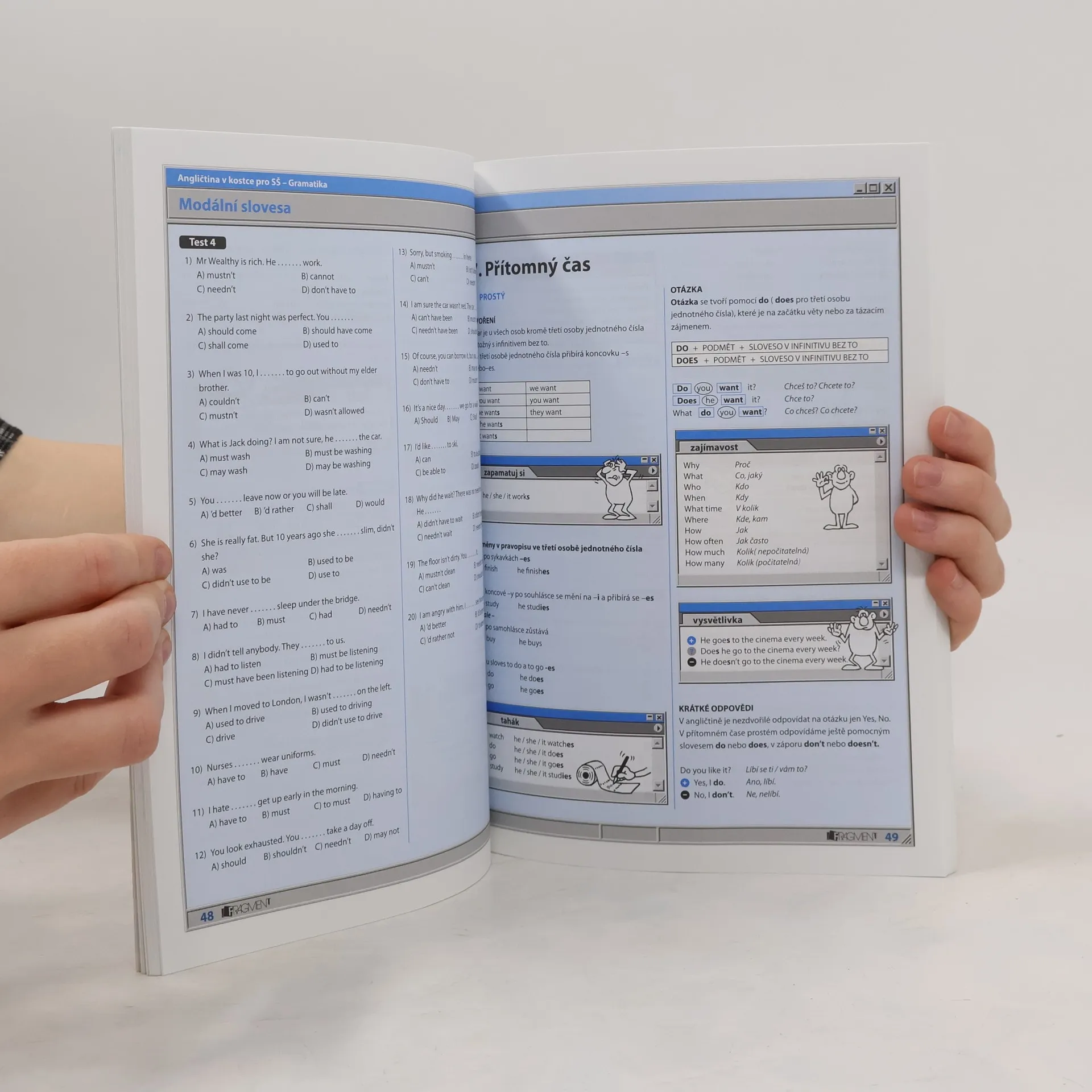 Učíte se anglicky? Moderní učebnice koncipovaná jako pracovní sešit vám podrobně a jasně vysvětlí anglickou gramatiku. Součástí učebnice jsou cvičení a testy k ověření získaných znalostí. V závěru učebnice je i klíč ke kontrole správných řešení. Učebnice je vhodnou pomůckou nejen pro maturanty a středoškoláky ale i pro samostudium.