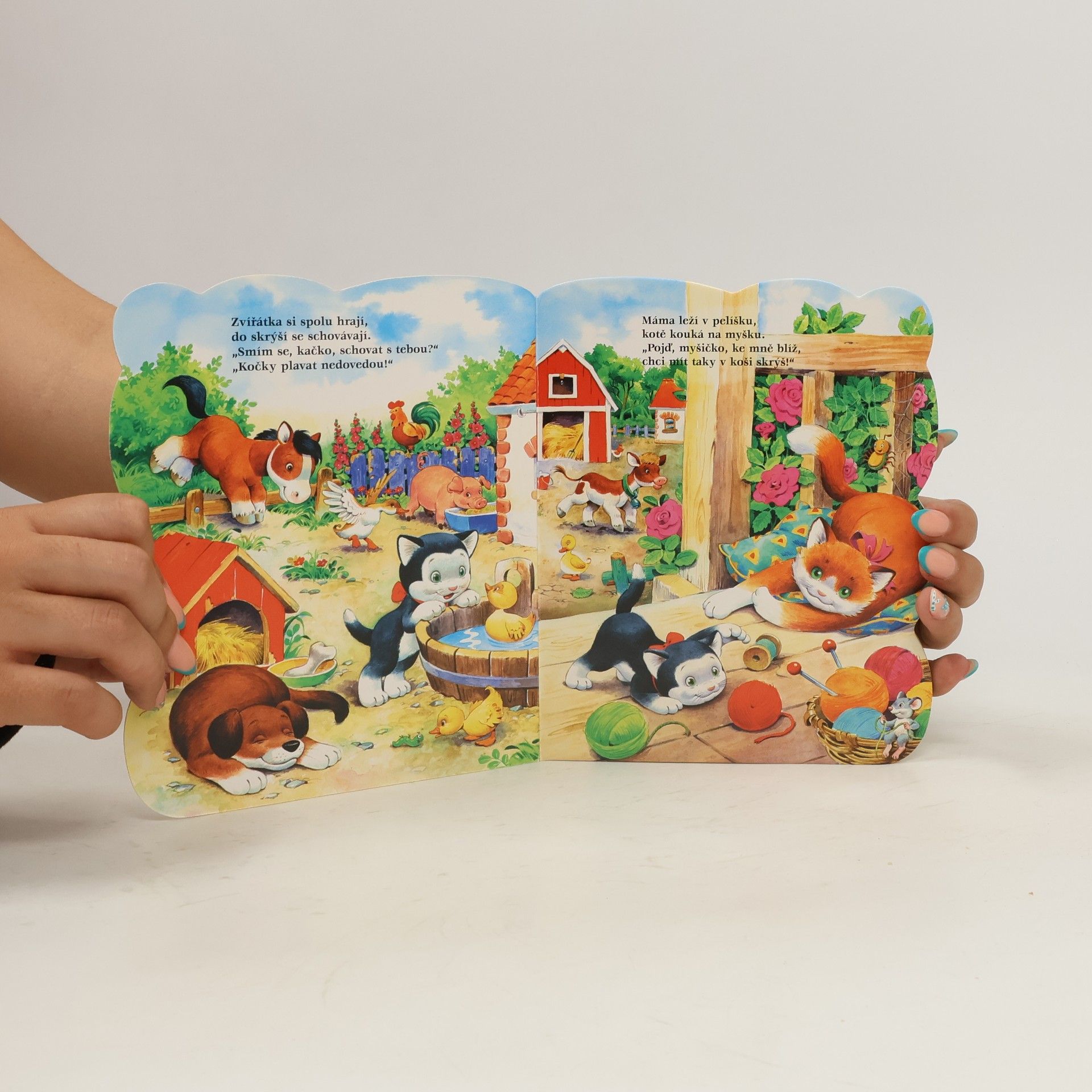 Leporelo s výsekem vypráví o malém koťátku, které si rádo hrálo. Jak to dopadlo a jestli si s ním hrála i ostatní zvířátka na dvorku, se dozví nejmenší čtenáři z veselého leporela.