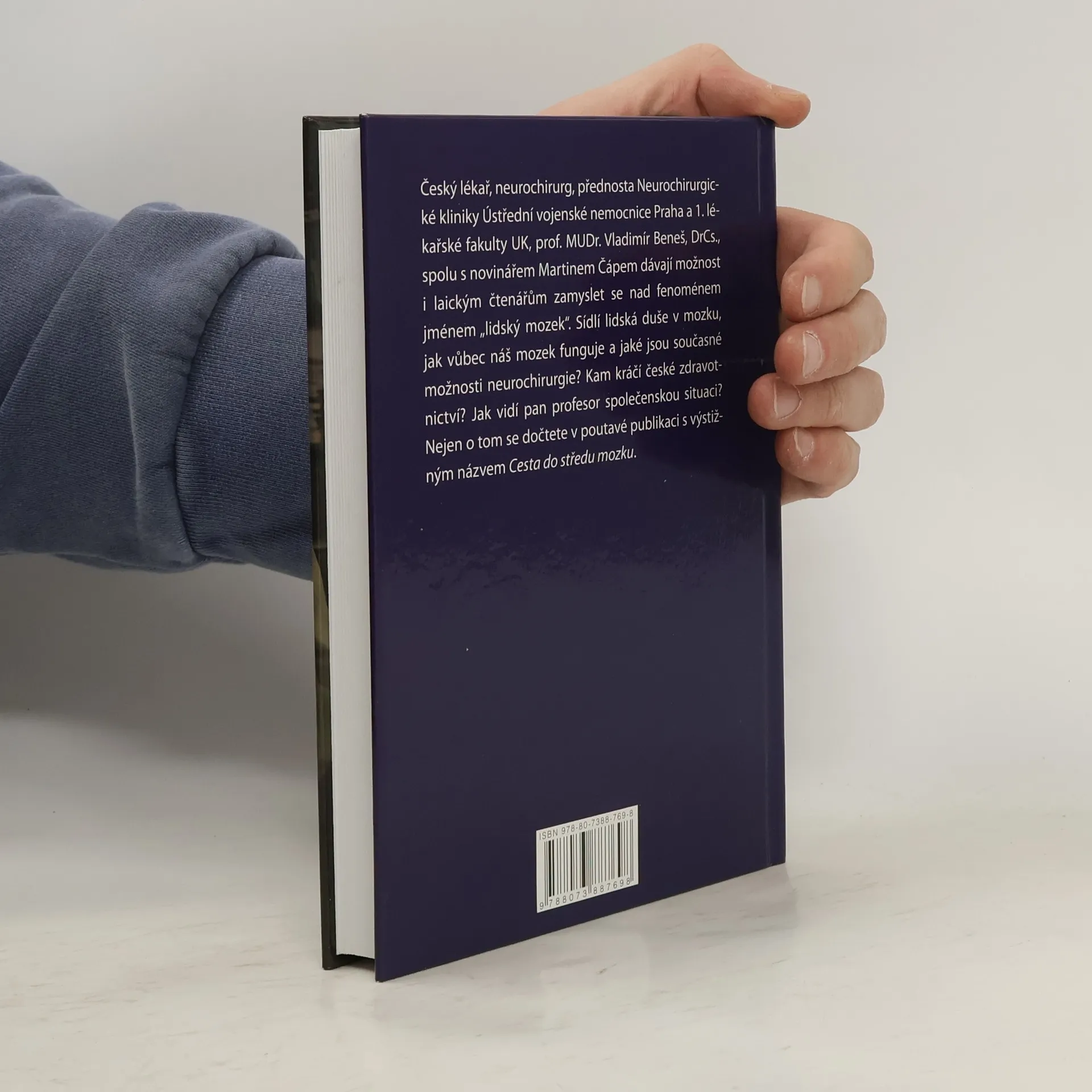 Jméno Plk. prof. MUDr. Vladimíra Beneše, DrSc. není třeba příliš představovat. Český lékař, neurochirurg, přednosta Neurochirurgické kliniky Ústřední vojenské nemocnice Praha a 1. Lékařské fakulty UK je velmi dobře znám po celém světě. Mimo jiné působí také ve funkci předsedy České neurochirurgické společnosti a prezidenta Evropské asociace neurochirurgických společnosti. Od roku 1998 zároveň vede subkatedru neurochirurgie na Institutu postgraduálního vzdělávání ve zdravotnictví (IPVZ). Spolu s novinářem Martinem Čápem dává MUDr. Beneš možnost i laickým čtenářům zamyslet se nad fenoménem jménem „lidský mozek“. Sídlí lidská duše v mozku, jak vůbec náš mozek funguje a jaké jsou současné možnosti neurochirurgie…? Nejen o tom se dočtete v poutavé publikaci s výstižným názvem Cesta do středu mozku.