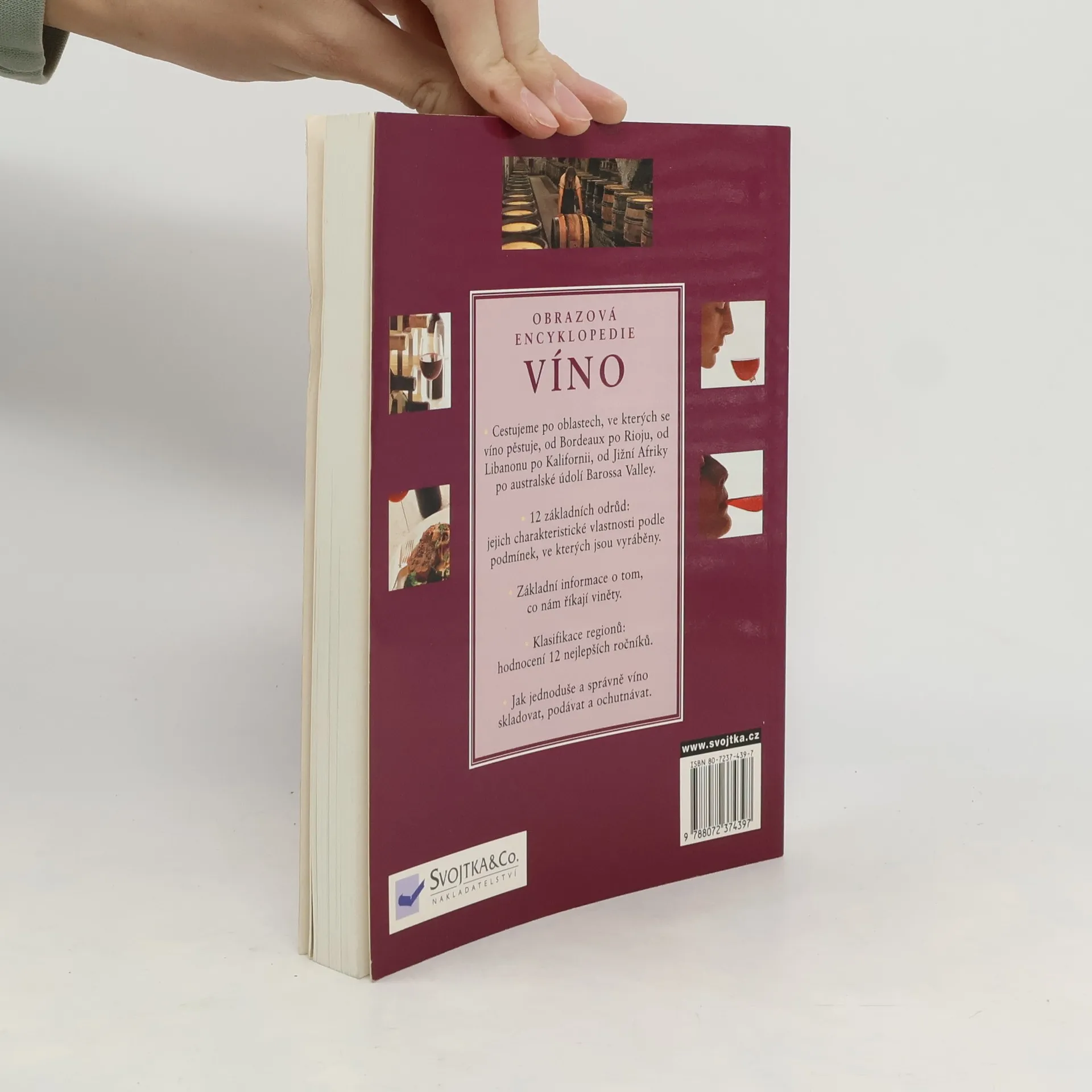 Kompletní, odborně věrohodný a přístupný průvodce světem vín, seřazený podle zemí a oblastí se cestou kolem světa zastavuje u slavných i méně známých pěstitelů - od francouzských vinic přes Východní Evropu, Turecko, severní Afriku, přes Chile až do Austrálie. Věnuje se dvanácti hlavním světovým odrůdám hroznů, podává informace o jejich aromatu a vysvětluje, jak vzniká specifická chuť i barva vína v závislosti na půdě, podnebí a technologii výroby. Jsou připojena doporučení ročníků, pěstitelů, dále barevné fotografie a mapky.