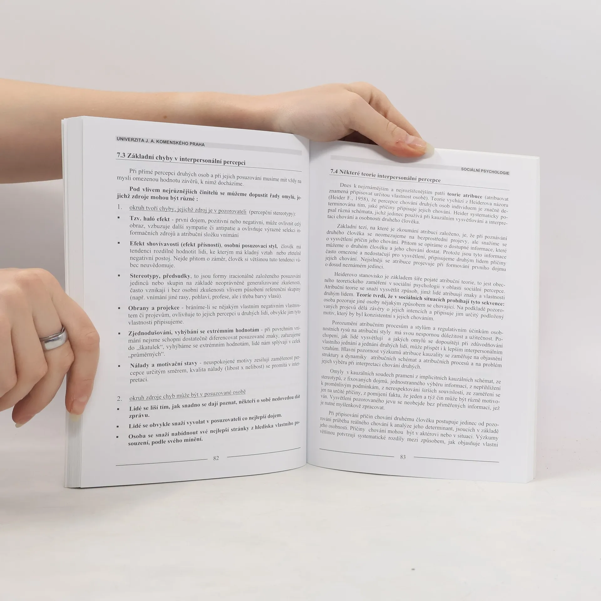 Učebnice sociální psychologie poskytuje stručný úvod do problematiky a seznamuje s vybranými psychologickými tématy. Předmět a místo psychologie v systému věd, metody sociální psychologie, sociální skupina, rodina, socializace, sociální percepce, sociální komunikace a masová komunikace - to jsou hlavní témata učebnice. Autorky podávají jejich stručný a přehledný výklad. V textu používají citace a odkazy na odbornou literaturu. Každá kapitola je uvedena vytyčením studijních cílů a klíčovými slovy, na závěr ji doplňují otázky a úkoly testující pochopení vysvětlené látky. Nechybí ani závěrečný slovník odborných výrazů.